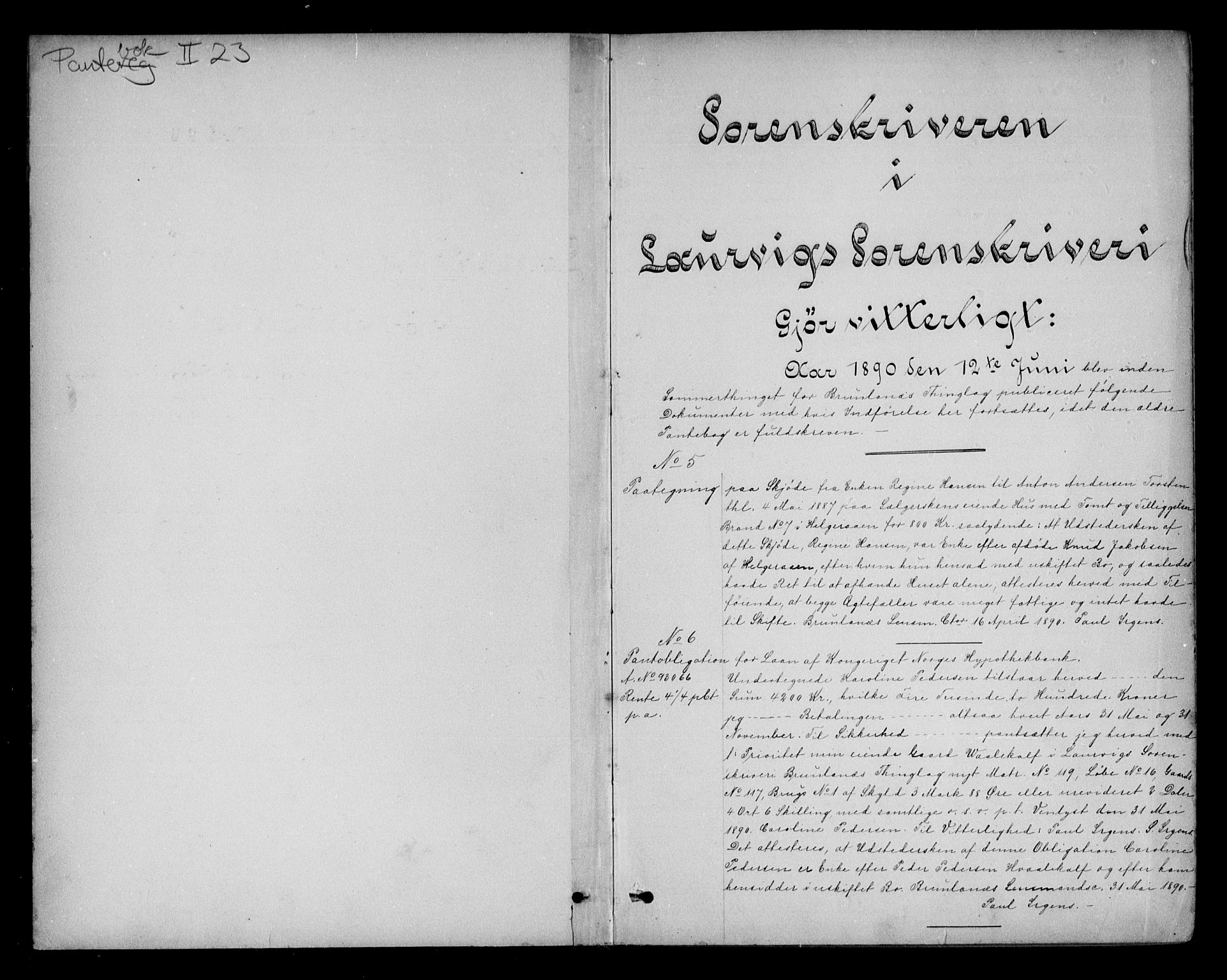 no. II 23 /12.06.1890 - 14.12.1893Vestfold county Larvik jud. dist. -Deed registrationPledge booksPropertyState archivesJudges and clerks