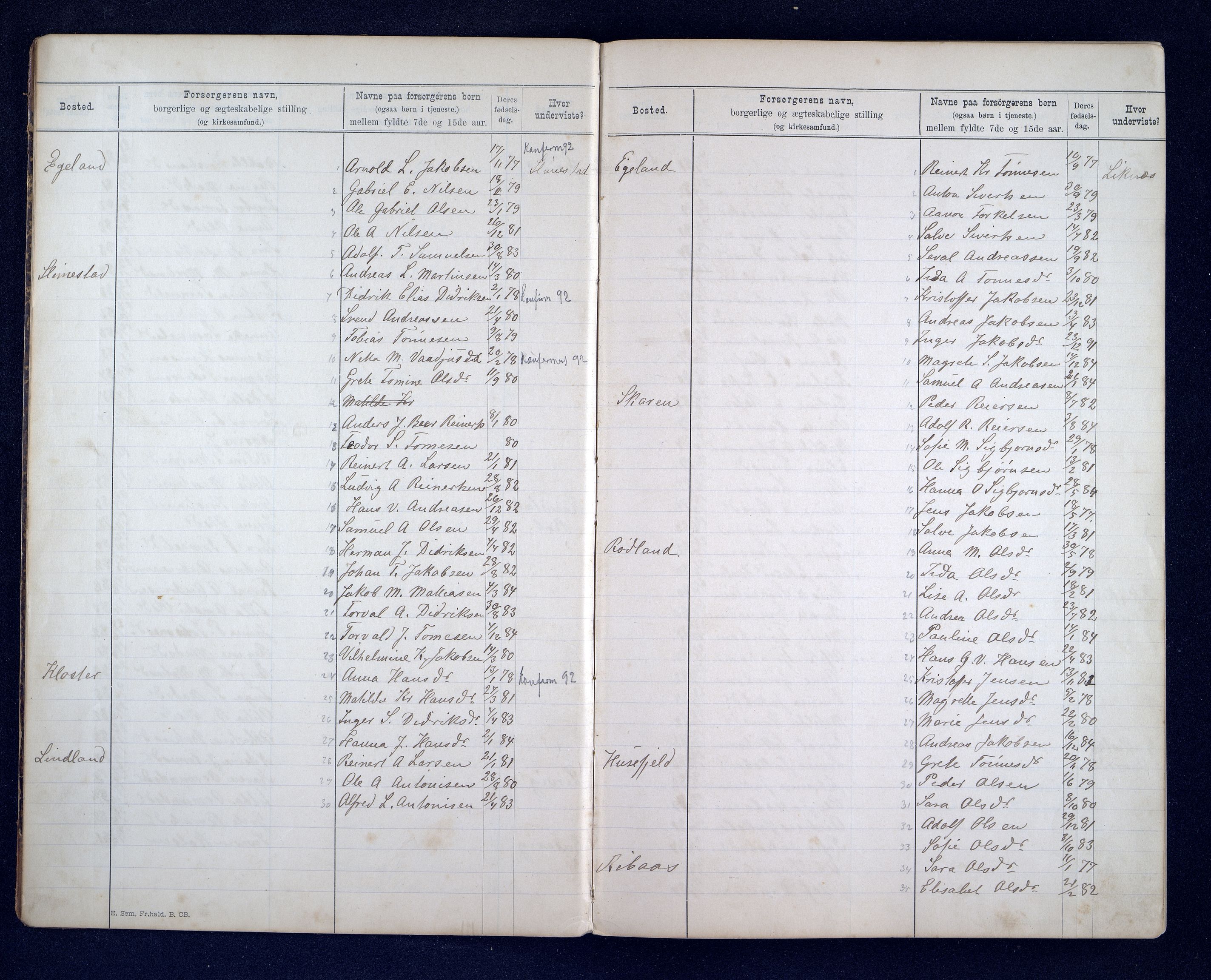 Kvinesdal kommune - Skolestyret - Register over skolepliktige barn: 1878-1899, Astaref: ARKSOR/1037KG510/C/L0005