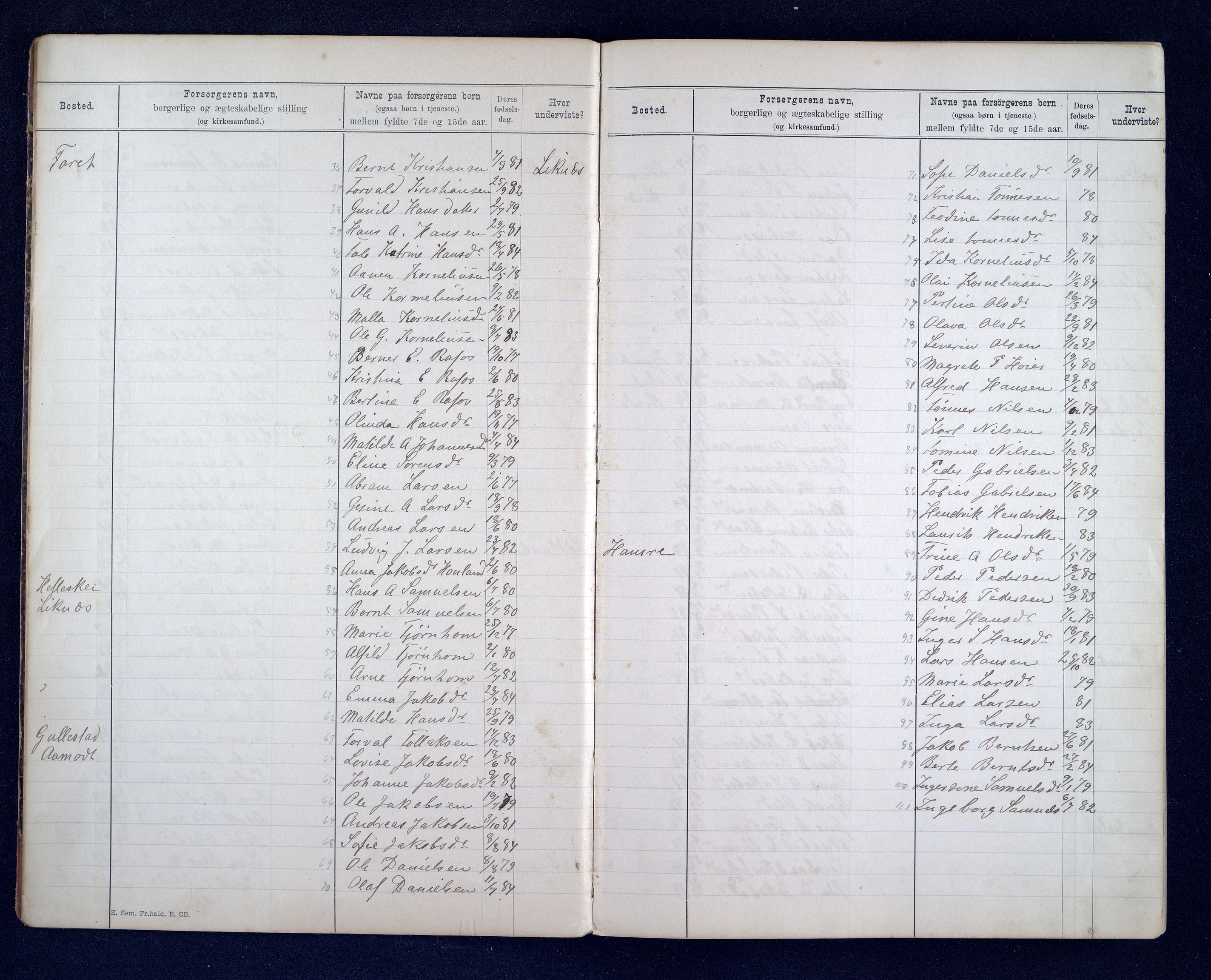 Kvinesdal kommune - Skolestyret - Register over skolepliktige barn: 1878-1899, Astaref: ARKSOR/1037KG510/C/L0005