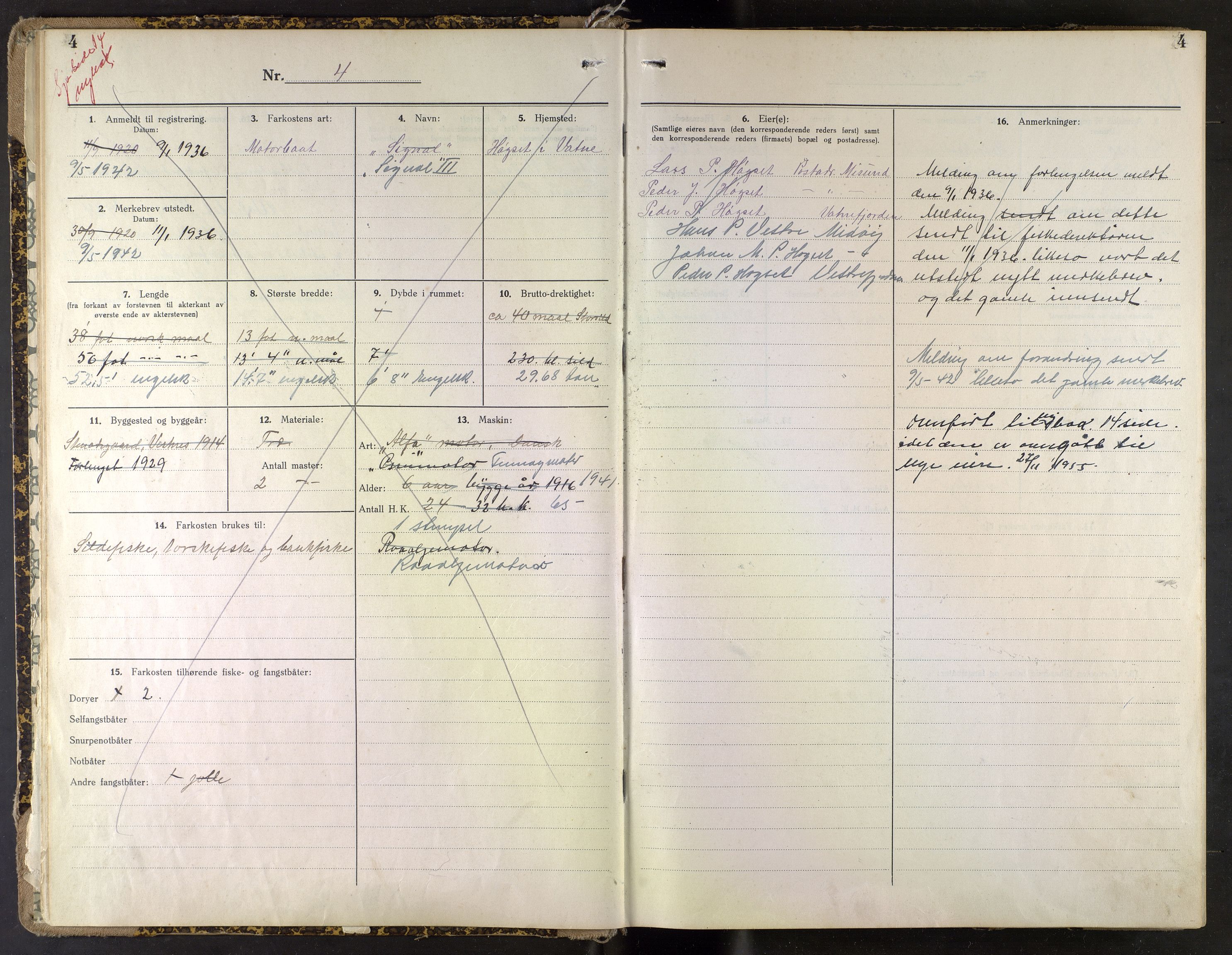 Fiskeridirektoratet (Båtkontoret), Merkeregisteret for fiskeriflåten - Møre og Romsdal, nr. 122: Merkeprotokoll for Vatne, 1920-1953, Astaref: AV/SAB-A-2003/I/Ia/Iaf/L0122
