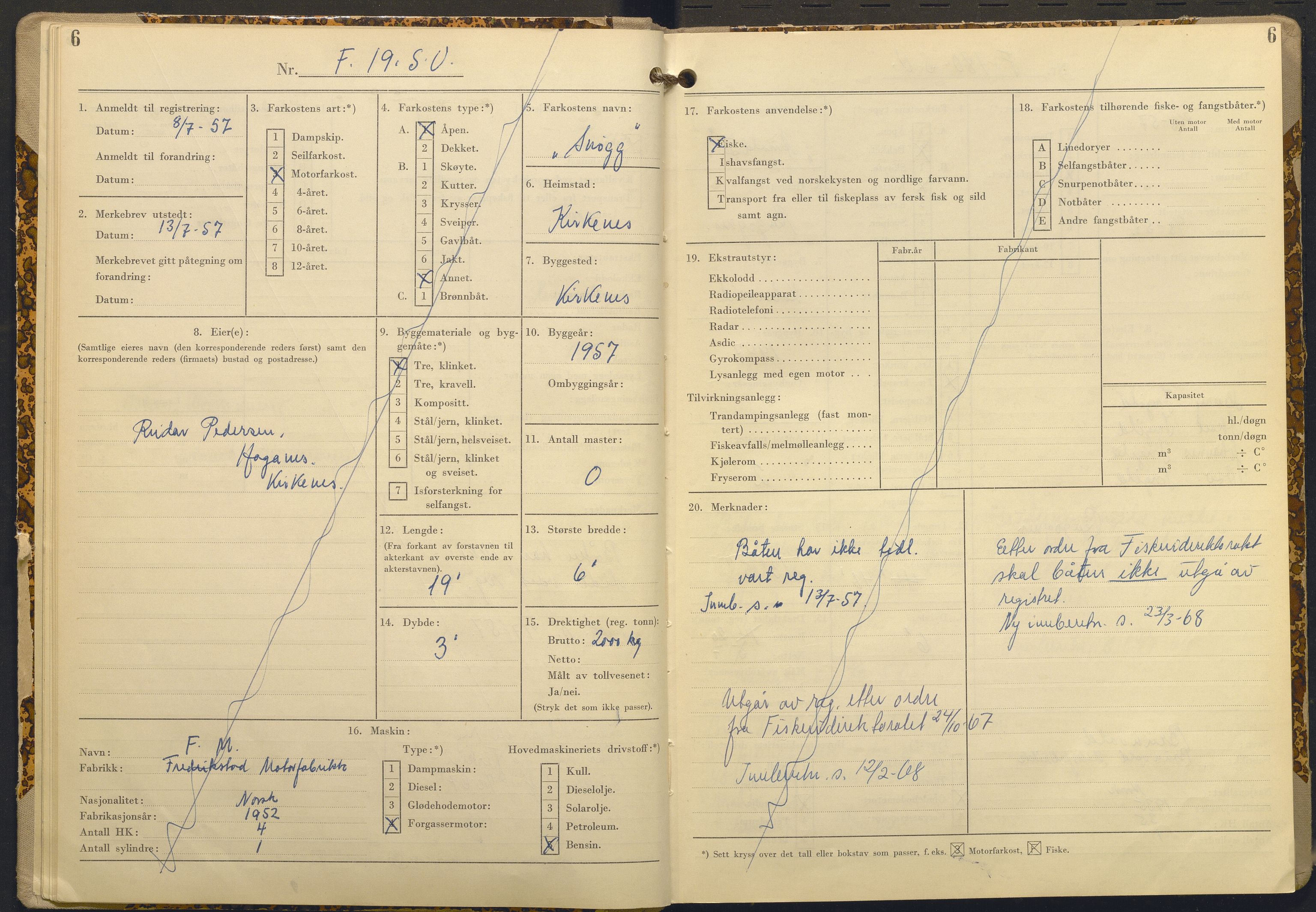 Fiskeridirektoratet (Båtkontoret), Merkeregisteret for fiskeriflåten - Finnmark, nr. 52: Merkeprotokoll for Sør-Varanger, 1956-1972, Astaref: AV/SAB-A-2003/I/Ia/Ia.a/L0052
