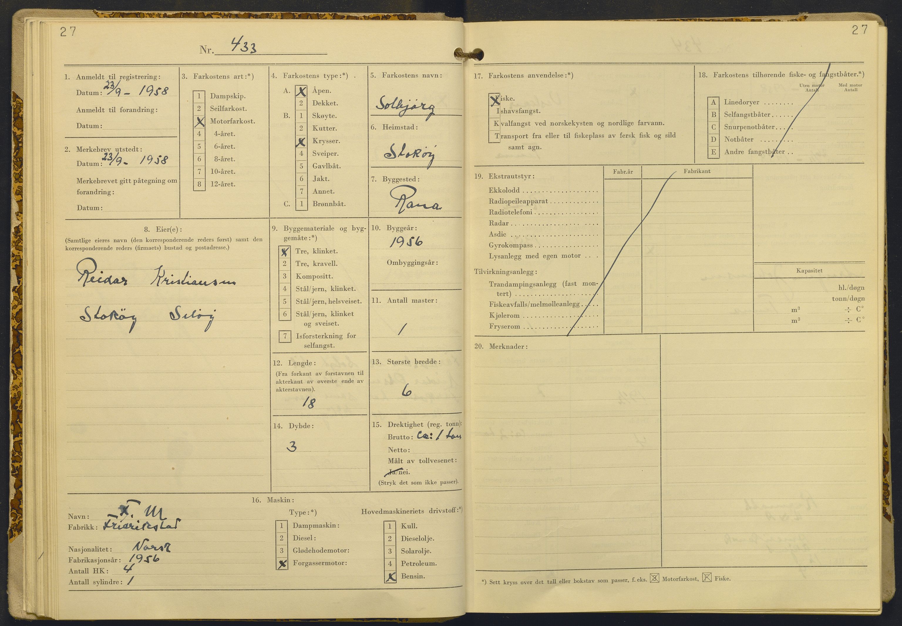 Fiskeridirektoratet (Båtkontoret), Merkeregisteret for fiskeriflåten - Nordland, nr. 85: Merkeprotokoll for Herøy, 1956-1965, Astaref: AV/SAB-A-2003/I/Ia/Iac/L0085