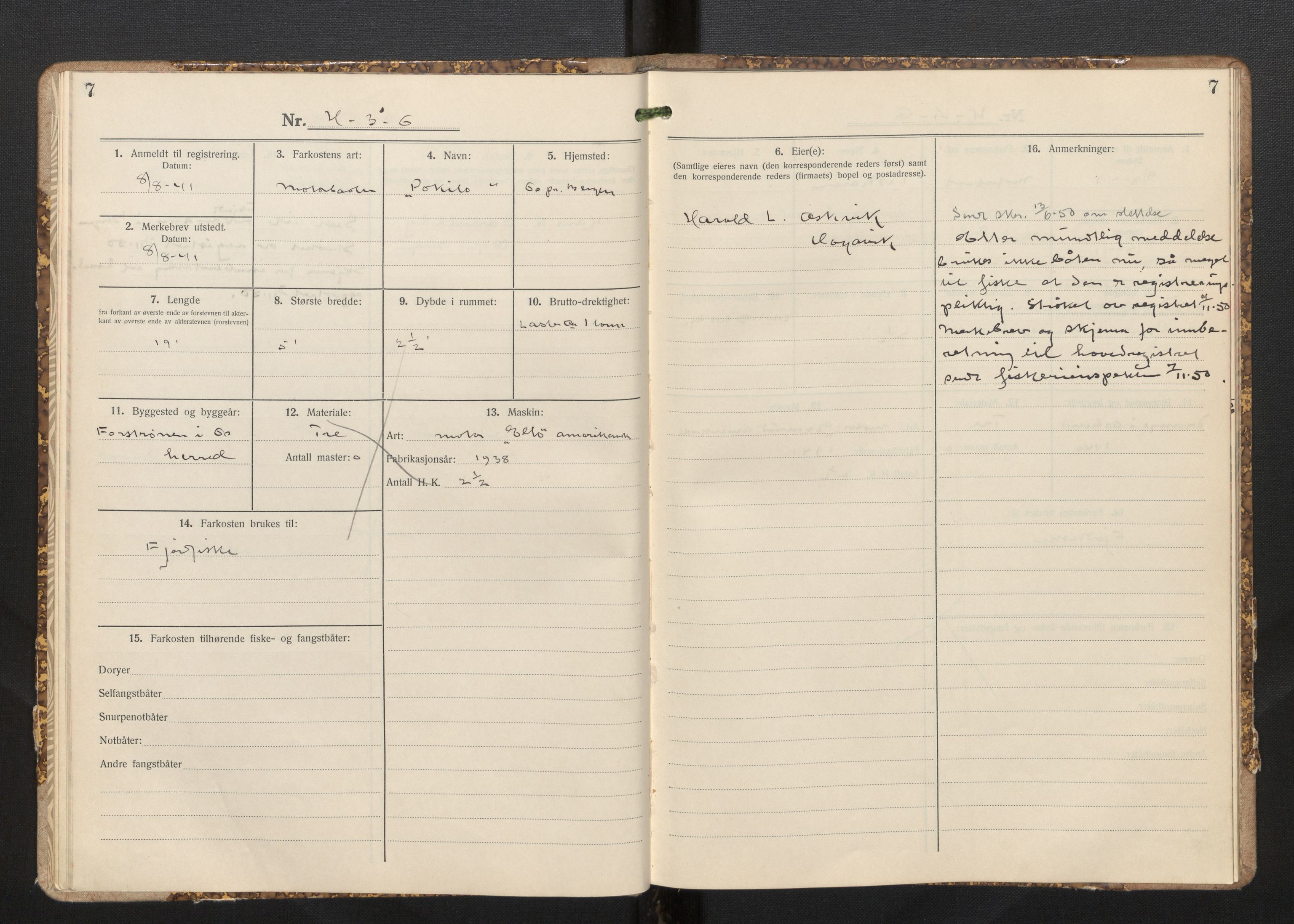 SAB-A-2003: Fiskeridirektoratet - 1 Adm. ledelse - 13 Båtkontoret I: 135 Merkeregisteret for fiskeflåten Ia: Merkeprotokoller Iah: 135.08 Merkeregisteret for fiskeriflåten - Hordaland L0102: 135.0836/3 Merkeprotokoll - Os Other source