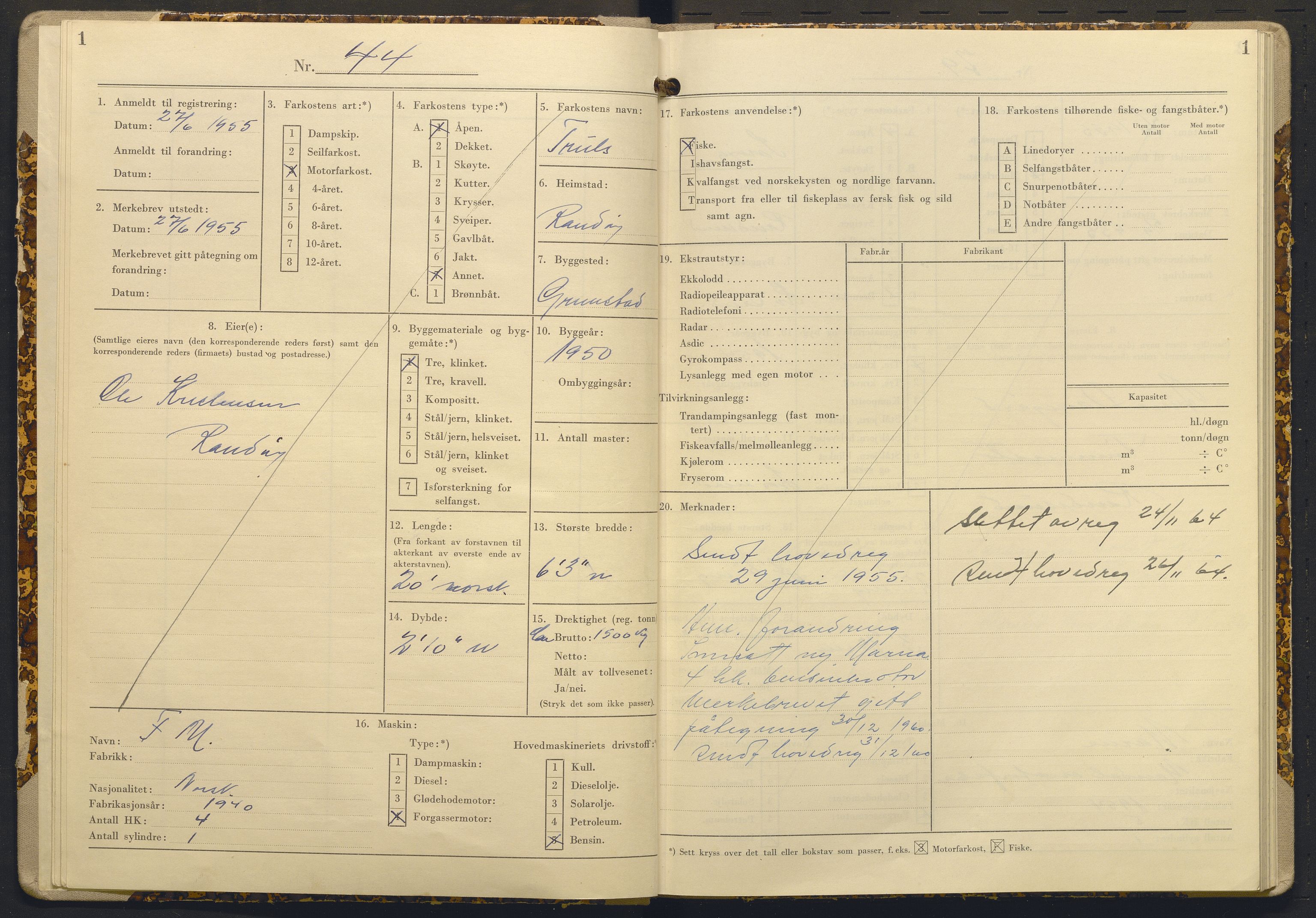 Fiskeridirektoratet (Båtkontoret), Merkeregisteret for fiskeriflåten - Vest-Agder, nr. 35: Merkeprotokoll for Randesund, 1952-1963, Astaref: AV/SAB-A-2003/I/Ia/Iaj/L0035