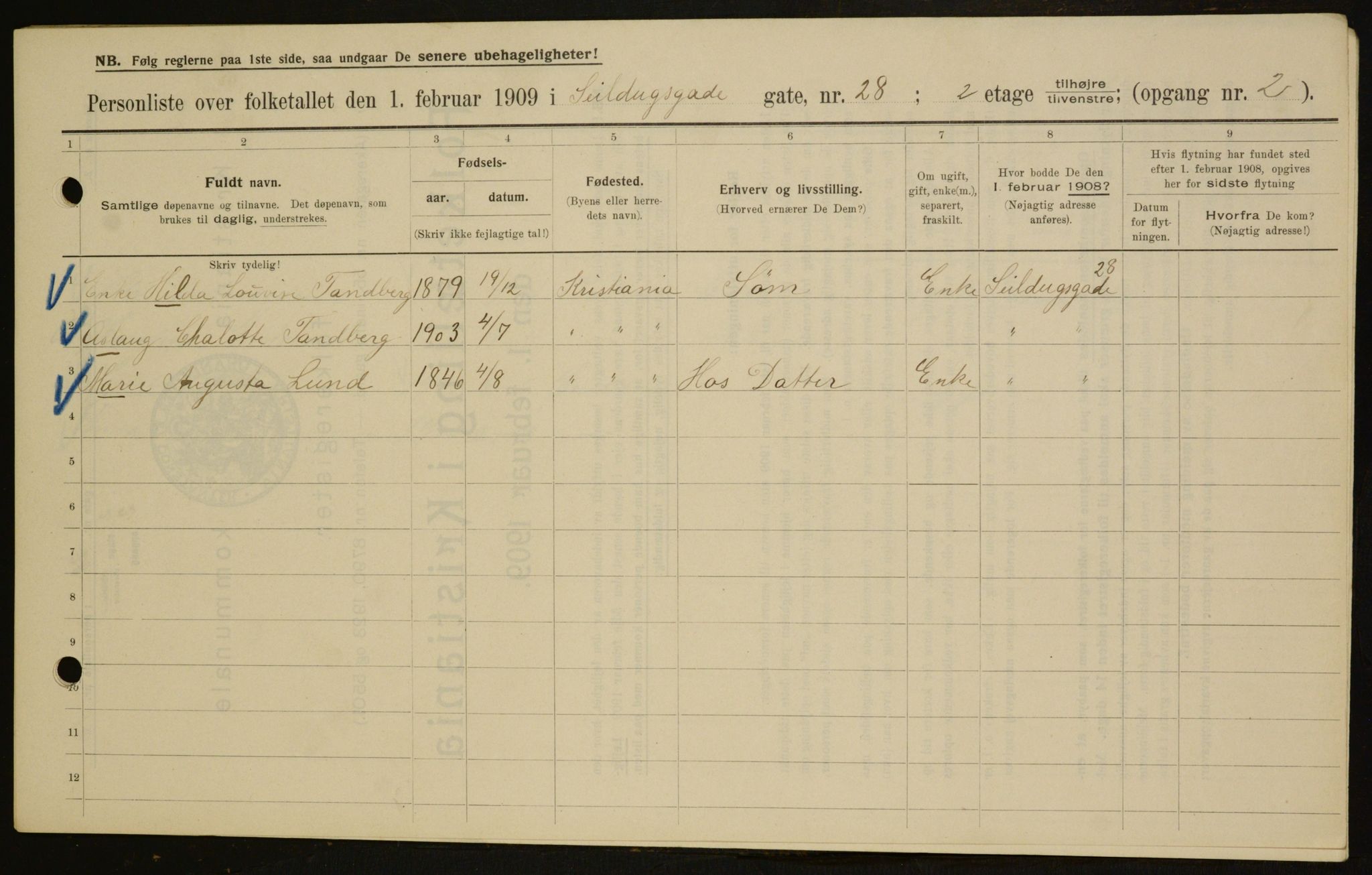 Kommunal folketelling for Kristiania, opptatt 1. februar 1909. Censuses Municipal censuses Personalia Municiple archives