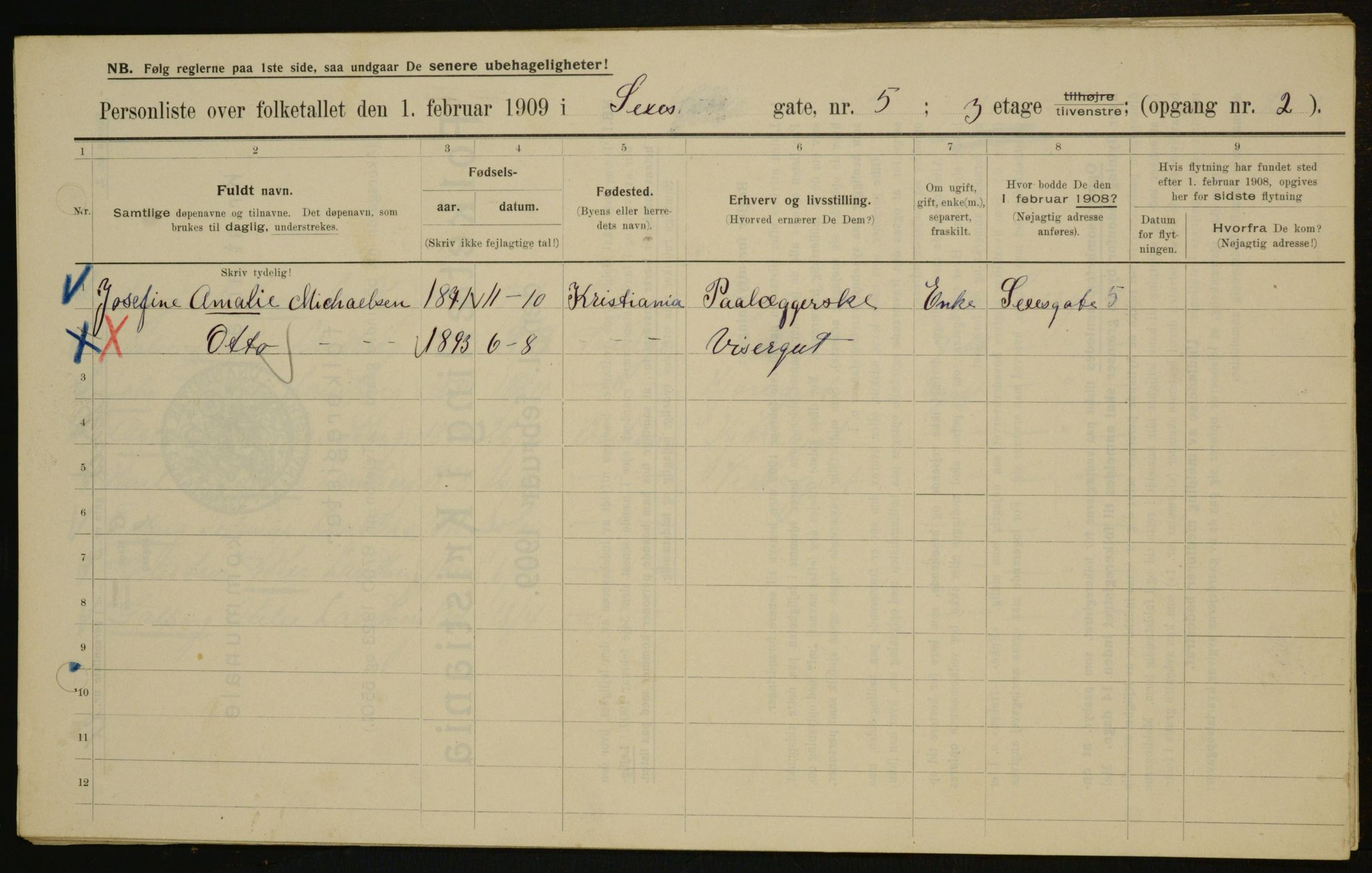 Municipal Census 1909 for Kristiania, Astaref: OBA/A-20057/Gbi