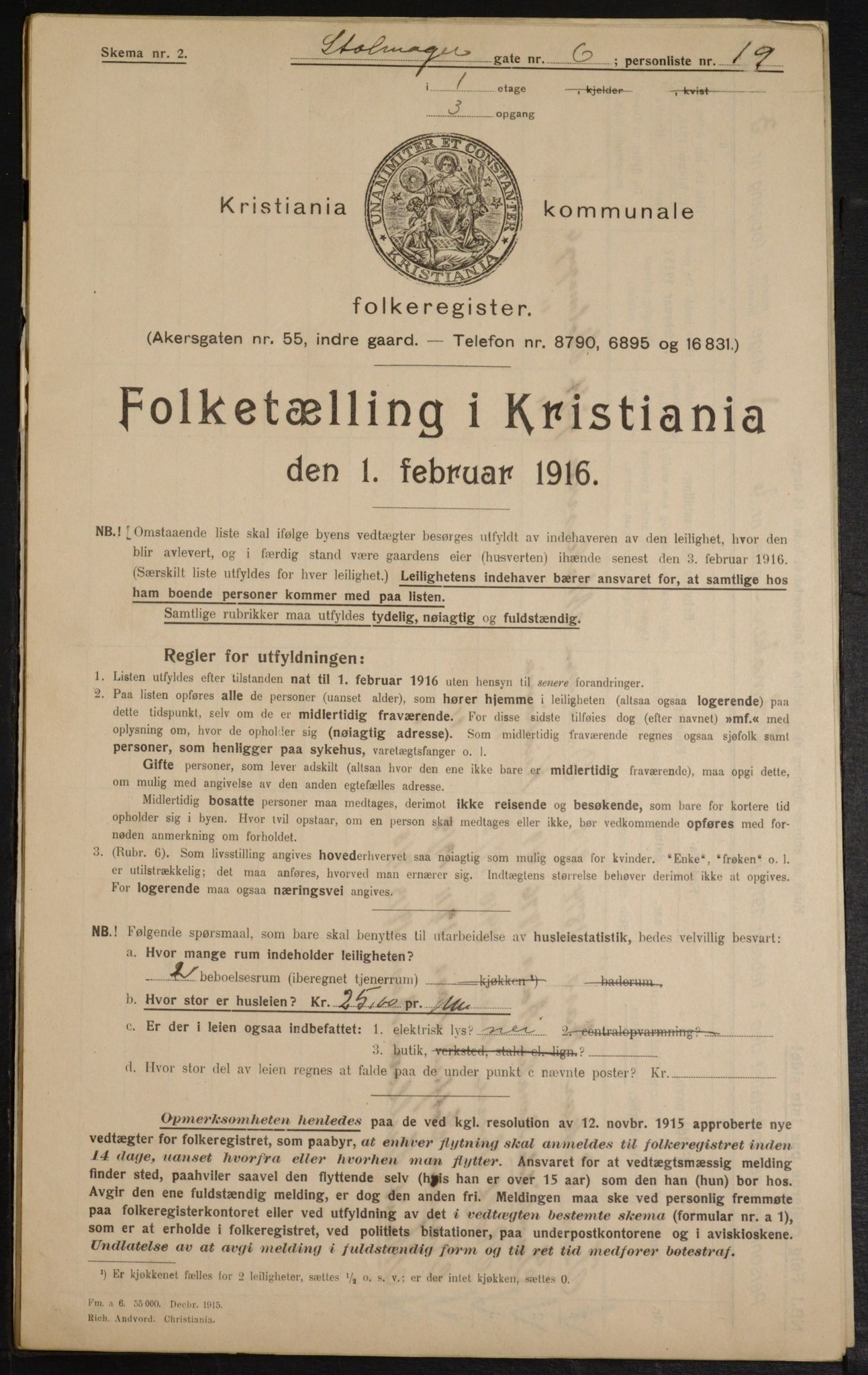 Municipal Census 1916 for Kristiania, Astaref: OBA/A-20057/Gbo