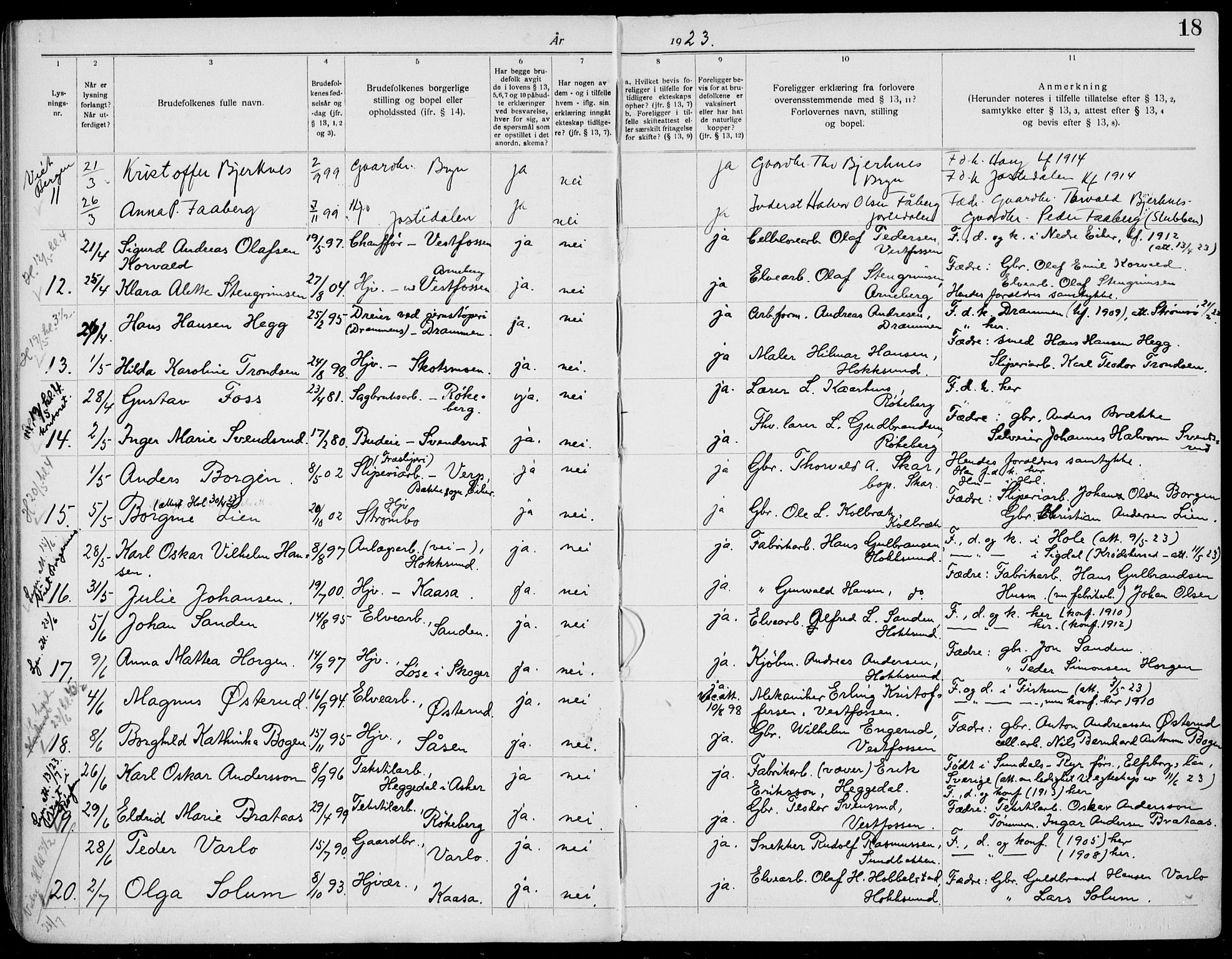 Banns register for Eiker parish, Haug local parish 1920-1939, Astaref: AV/SAKO-A-4/H/Ha/L0001