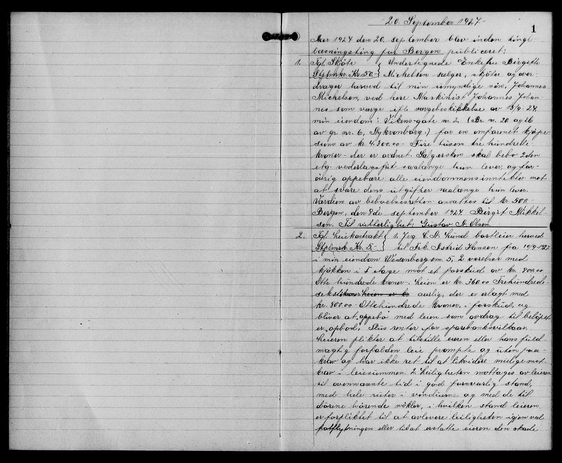 Mortgage book for Bergen byrett 1927-1928, Astaref: AV/SAB-A-3401/03/03Ba/L0105