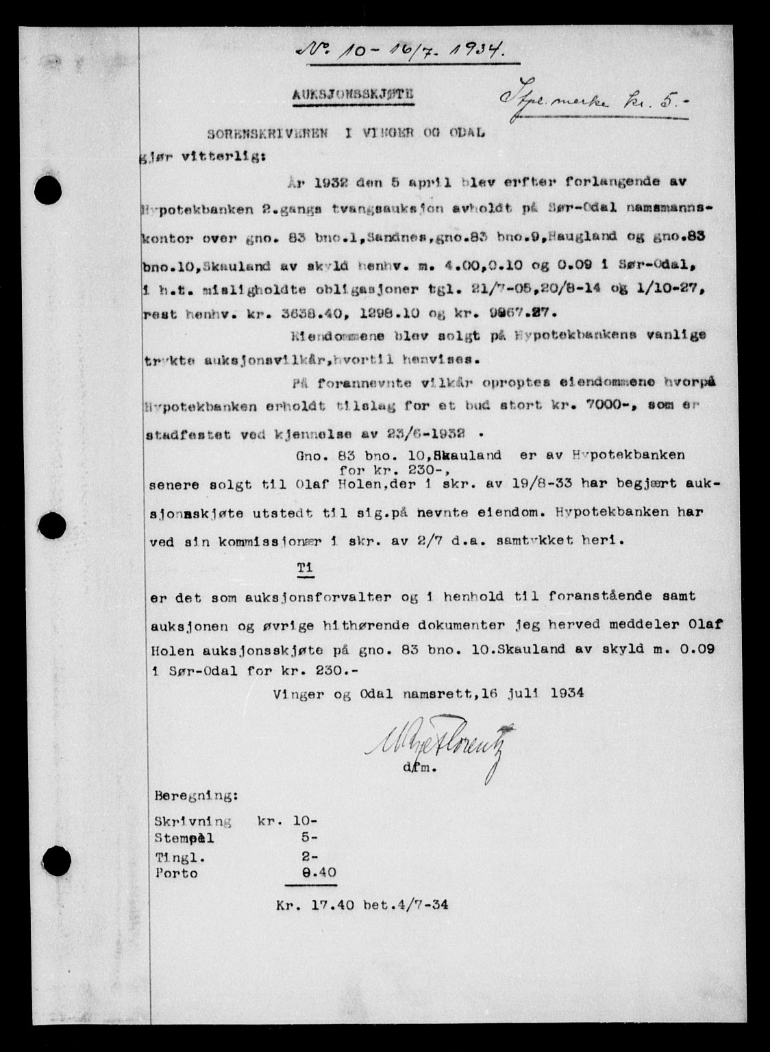 no. VIII /16.07.1934 - 01.07.1935Hedmark county Vinger og Odal jud. dist. Odal local jud. dist. -Deed registrationPledge booksPropertyState archivesJudges and clerks