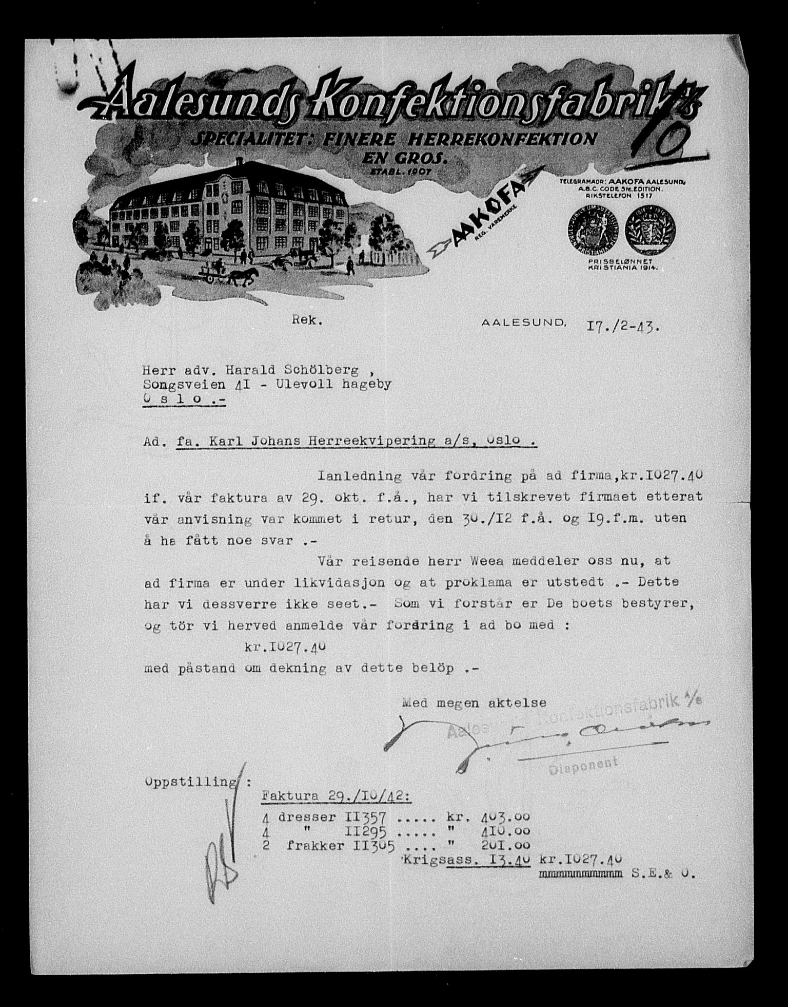 H: LIKVIDASJONSSTYRETS "BOMAPPER"MED TILKNYTTEDE KARTOTEK OG REGISTRE