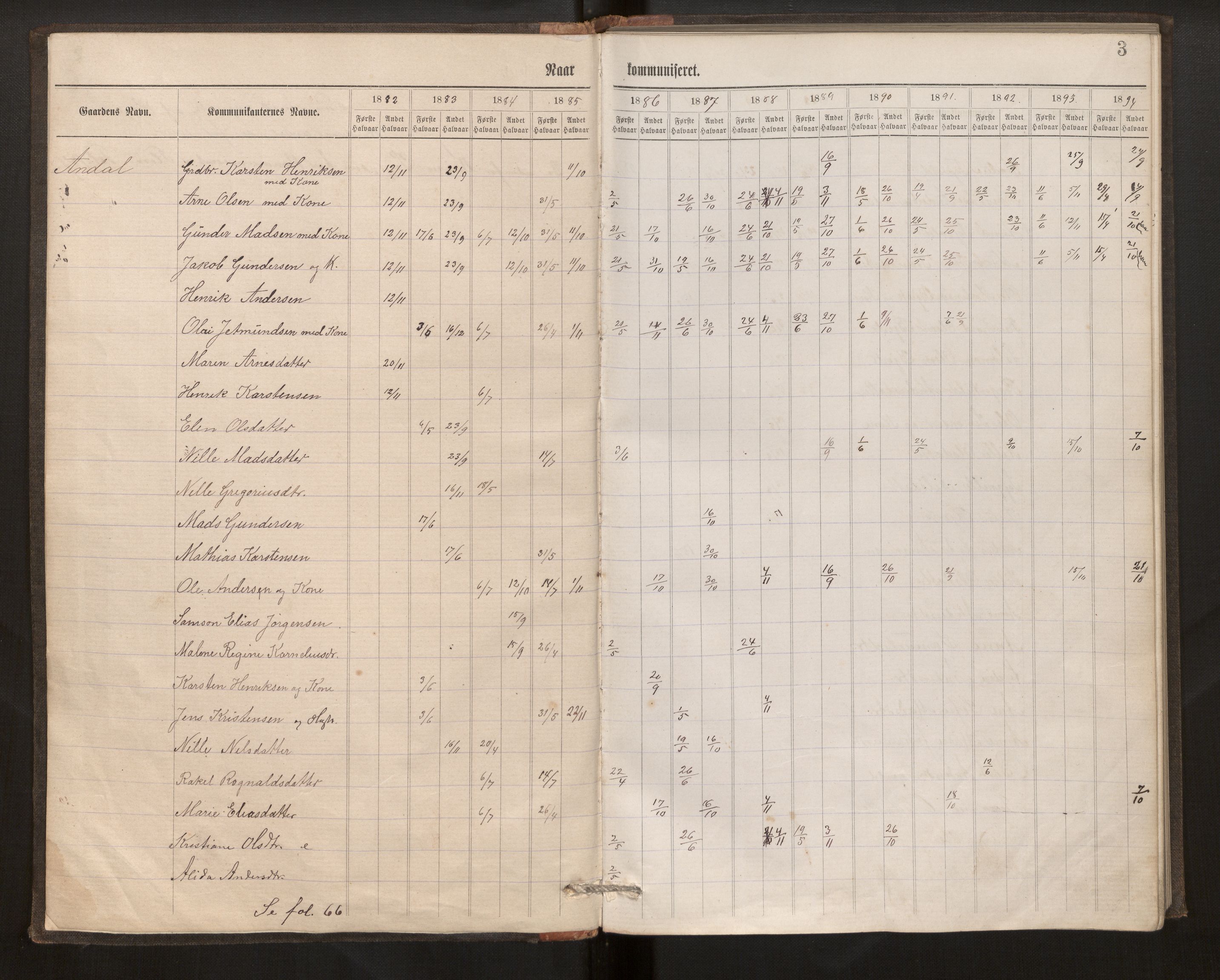 Kommunikantprotokoll for Kinn prestegjeld, Kinn sokn og Florø sokn 1882-1894, Astaref: AV/SAB-A-80801/H/Hb/L0006