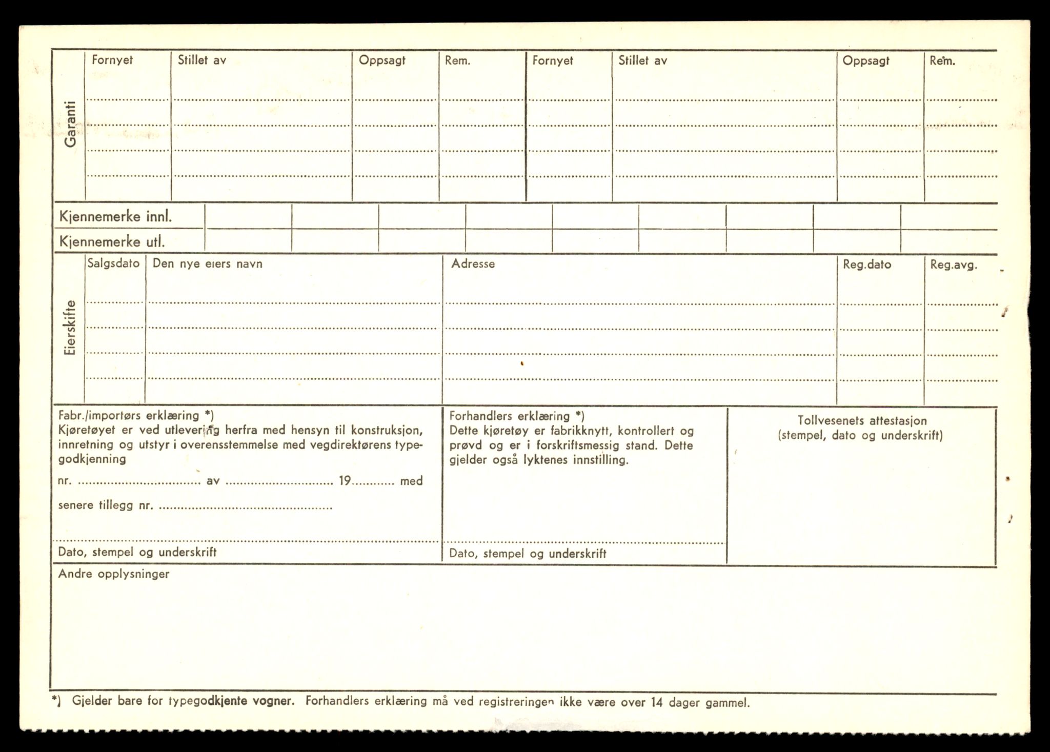 Fe: Registreringskort for kjøretøy