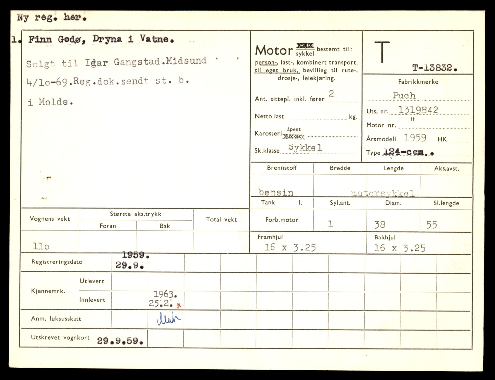 SAT-A-4099: Møre og Romsdal vegkontor - Ålesund trafikkstasjon F: Bilregister Fe: Registreringskort for kjøretøy L0041: Registreringskort for kjøretøy T 13710 - T 13905 Other source