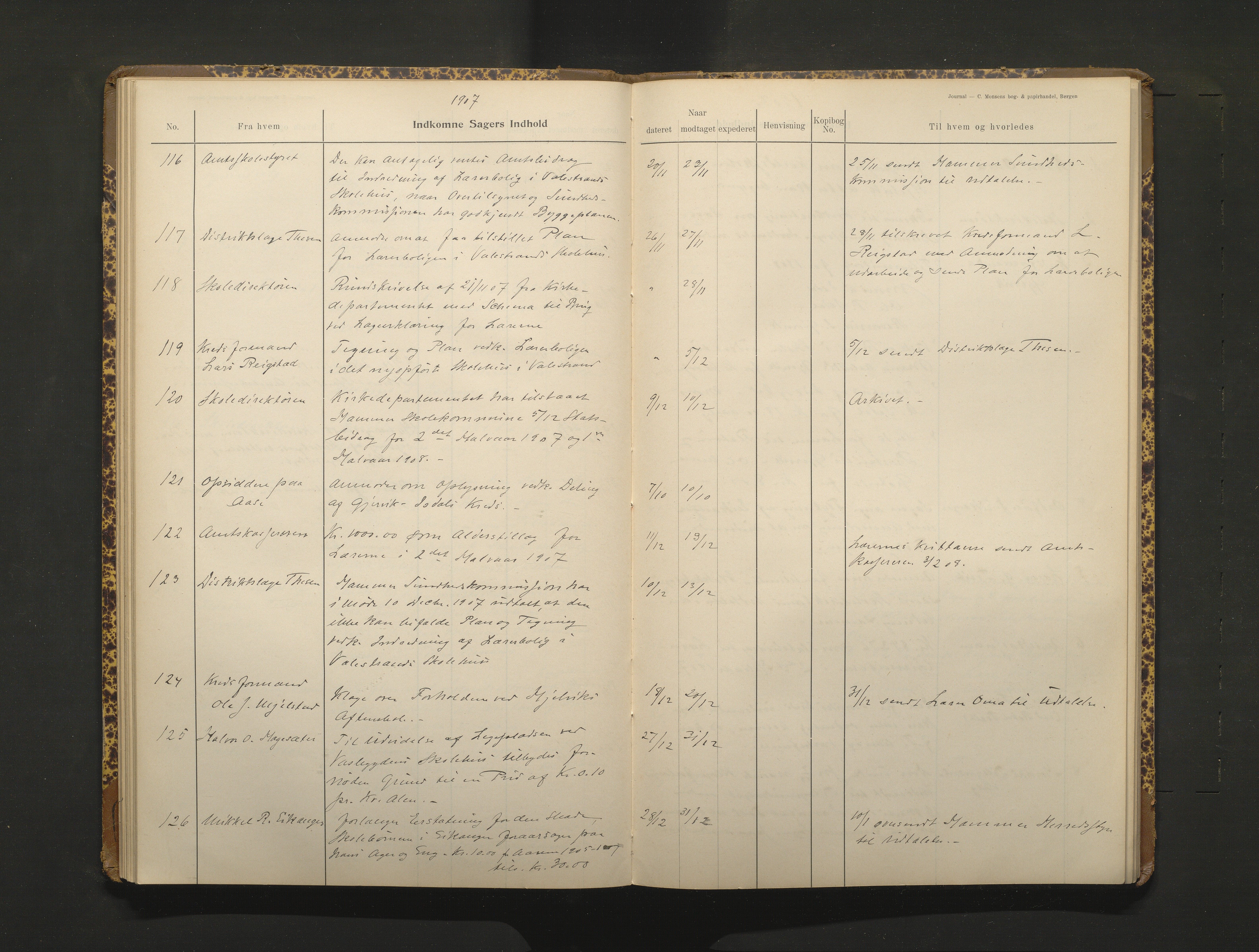 Hamre kommune, Skulestyret, Postjournal for Hamre Skulestyre, 1901-1916, Astaref: IKAH/1254-211/C/Ca/L0003