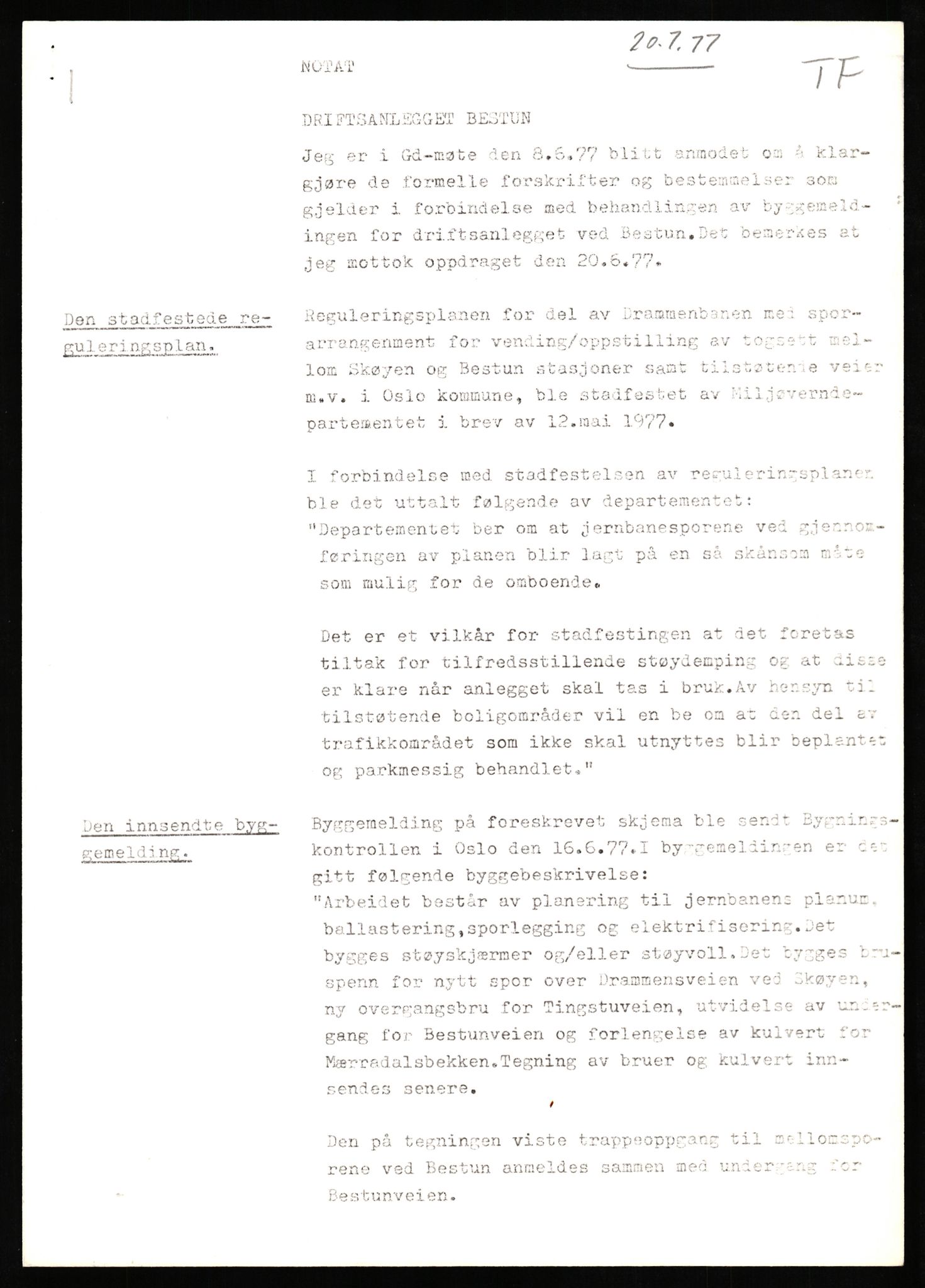Norges statsbaner, Hovedadministrasjonen, Plankontoret for Oslo S, Saksarkiv ordnet etter arkivnøkkel, nr. 171: Driftsbanegårder - Rettssak, Bestun, 1976-1978, Astaref: AV/RA-S-5410/D/L0171