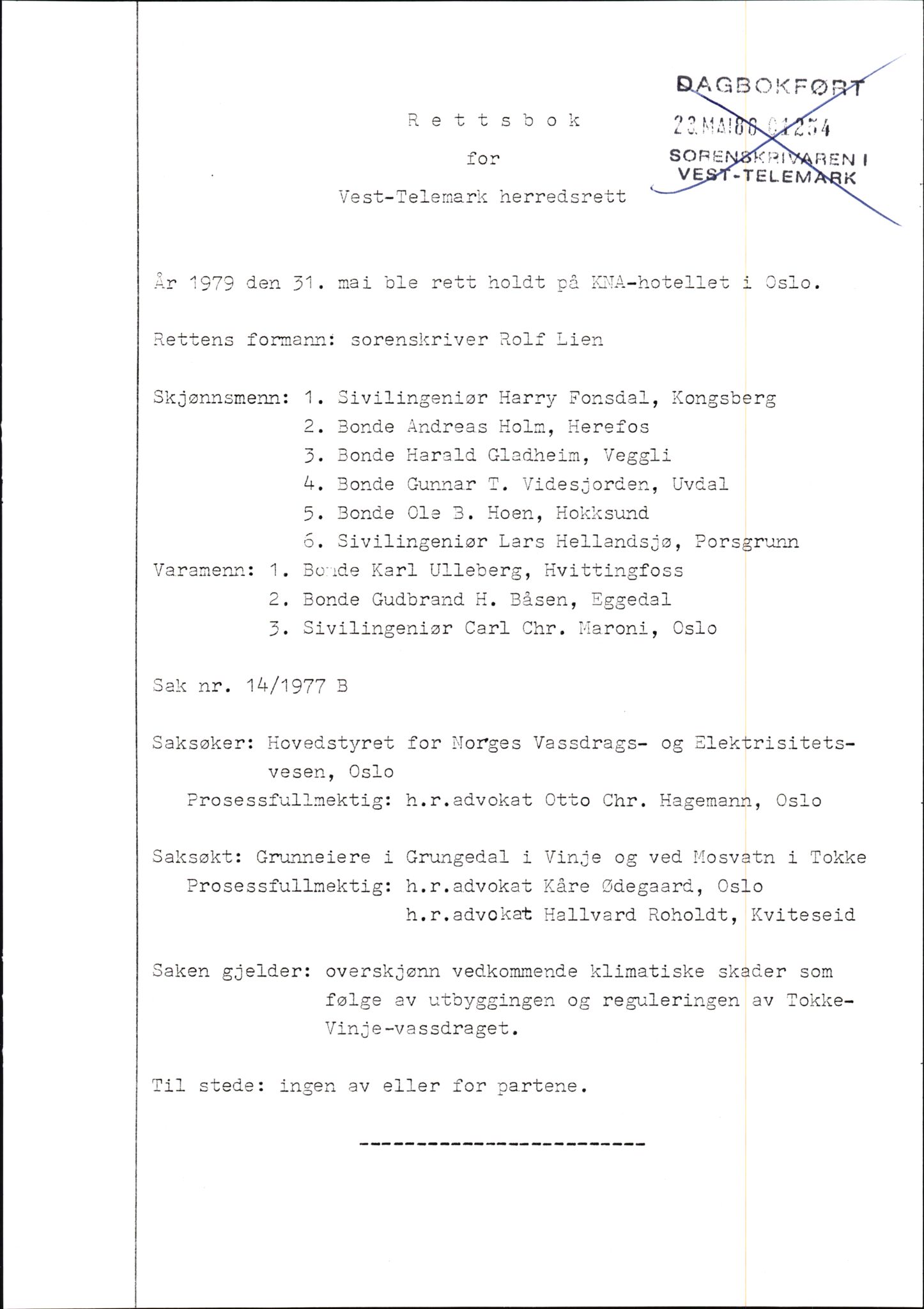 SAKO-A-134: Vest-Telemark sorenskriveri F: Rettergang Fo: Skjønn, takst og bevisopptak ( B-saker) Fob: Skjønn/rettsbøker for kraftutbygging/veg L0004: Skjønn/rettsbøker for kraftutbygging/veg Other court journal