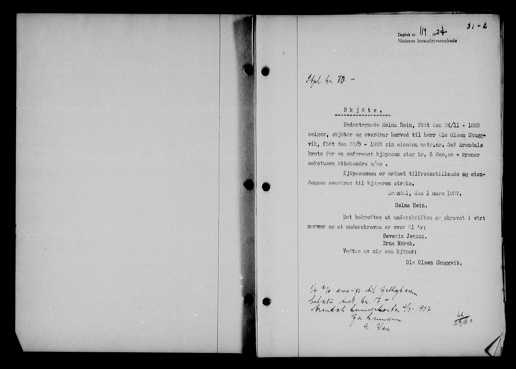 no. 31 /1937 - 1938Aust-Agder county Arendal city jud. dist. -Deed registrationPledge booksPropertyState archivesJudges and clerks