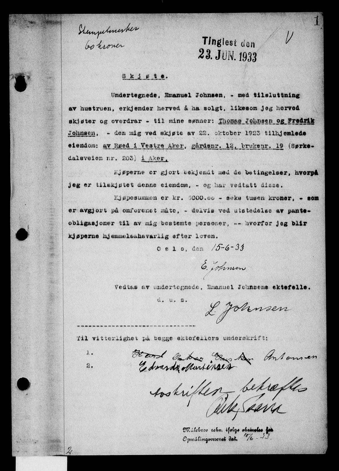 no. I 114 /23.06.1933 - 04.08.1933Akershus county Aker jud. dist. Aker local jud. dist. -Deed registrationPledge booksPropertyState archivesJudges and clerks