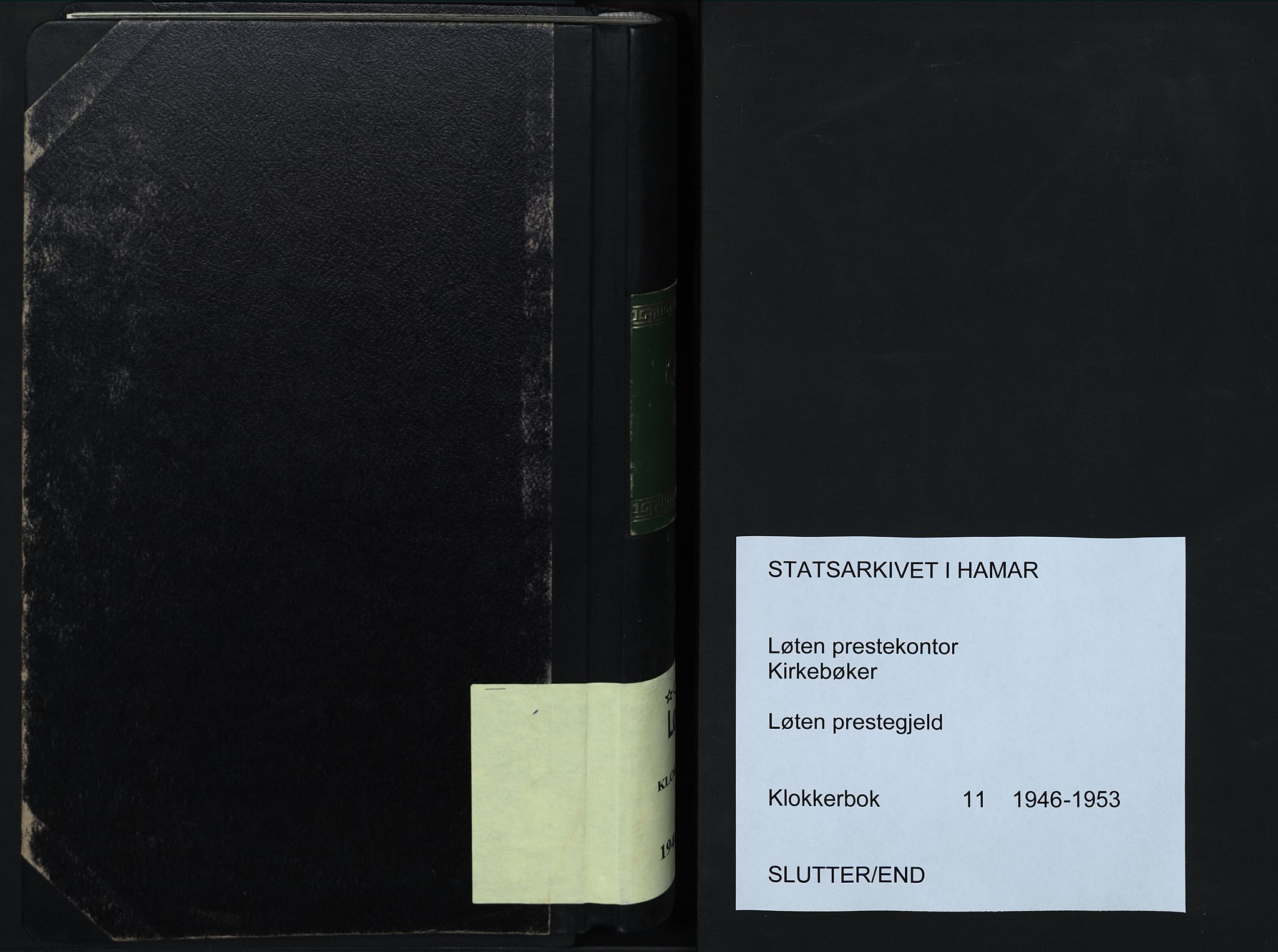 no. 11 /1946 - 1953Hedmark county Løten parish Løten local parish -Church booksSextons books, municipal officials booksPersonaliaBirths and christeningsConfirmationsEngagements, banns and marriageDeaths and burialsState archivesThe church