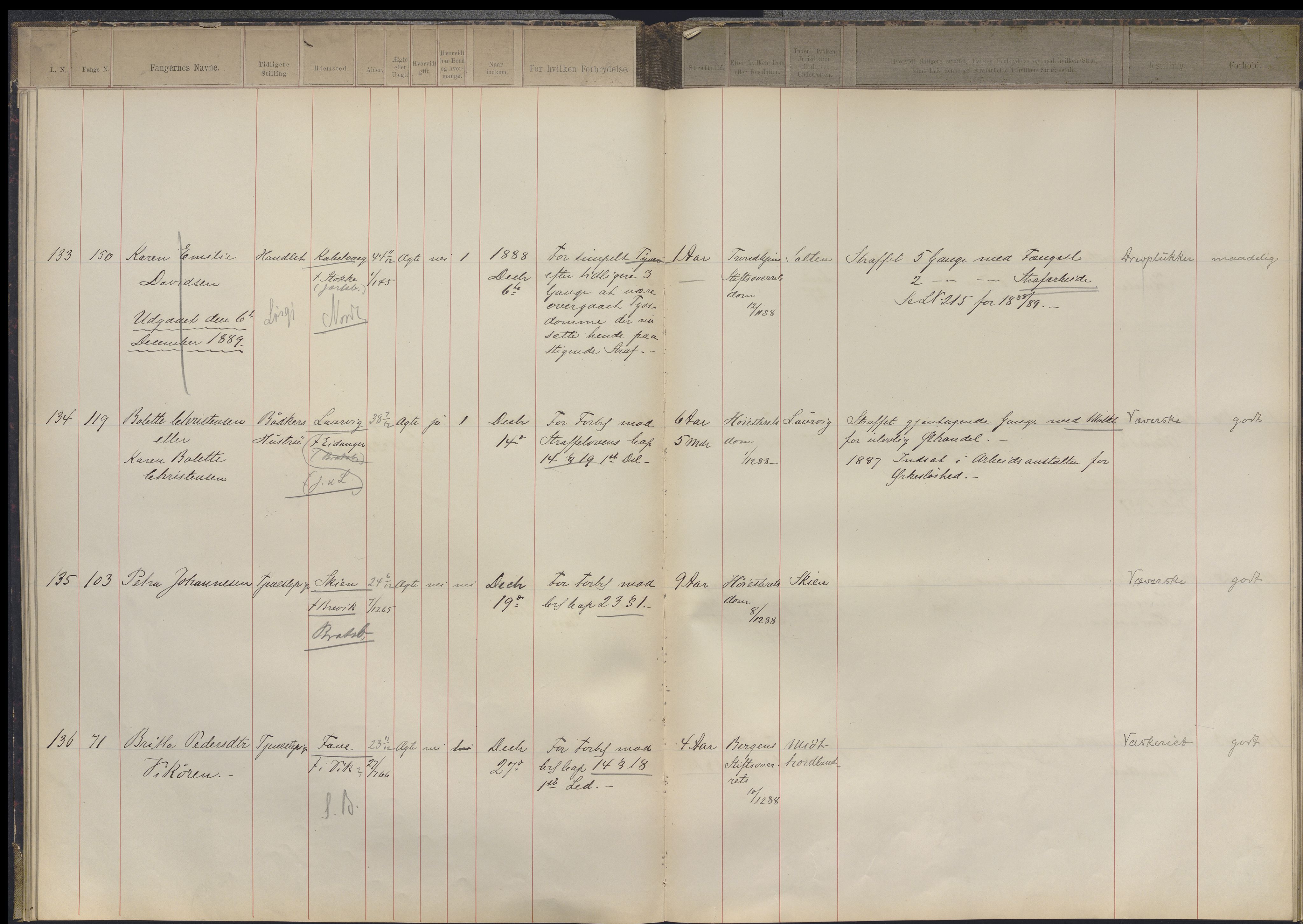 Prison register no. 123 /1889 - 1890 - Budsjettåret 1889-1890 Journals Personalia Prisoners State archives Prisons and penitentiaries Scan on demand (NA)