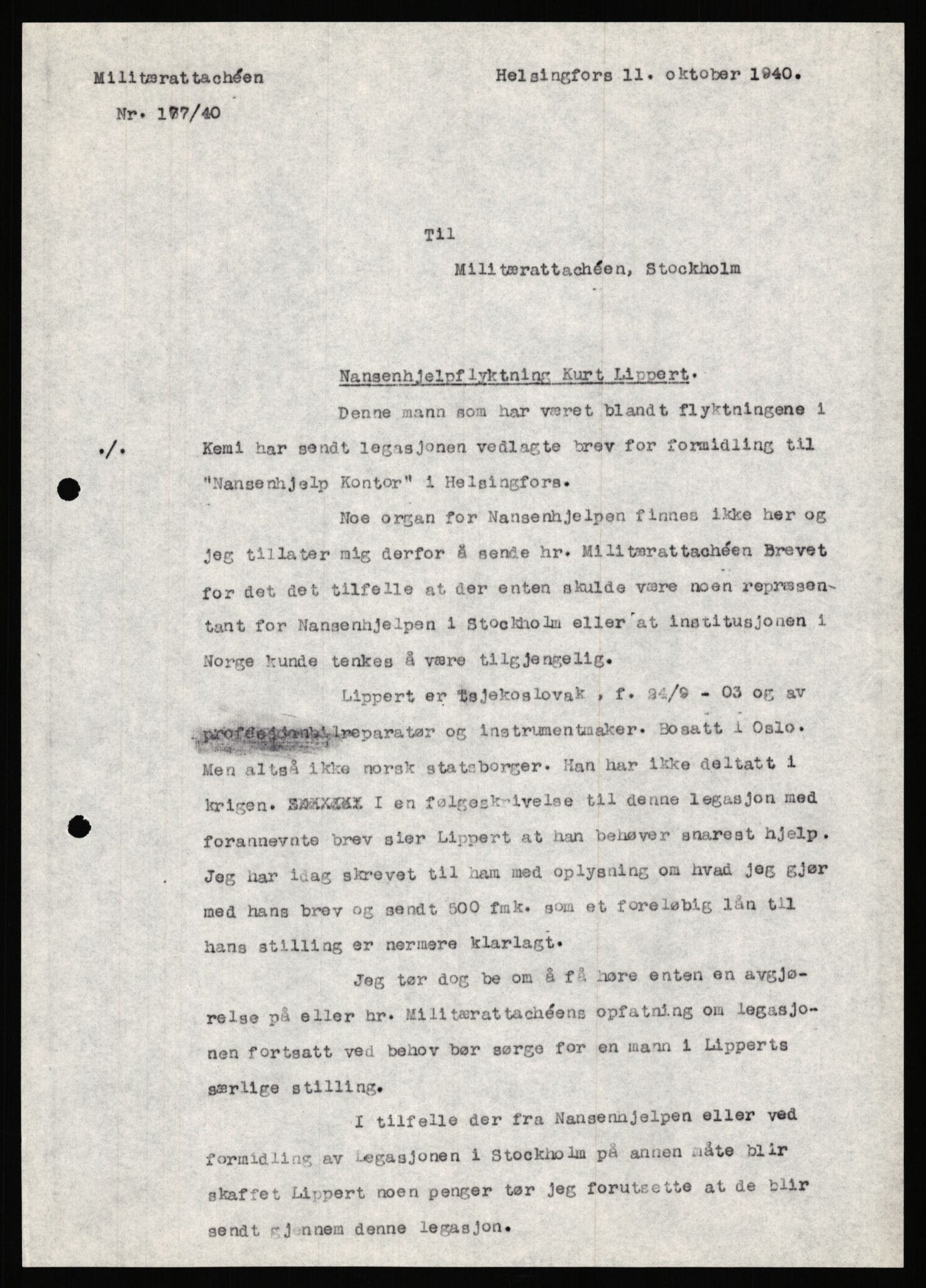 Forsvaret, Forsvarets krigshistoriske avdeling, Krigen i Norge 1940-1945, Ya - Sivil og militær sentraladministrasjon, nr. 6: Utenriksdepartementet, Legasjonen i Helsingfors, Militærattacheen, 1940-1946, Astaref: AV/RA-RAFA-2017/Y/Ya/L0006