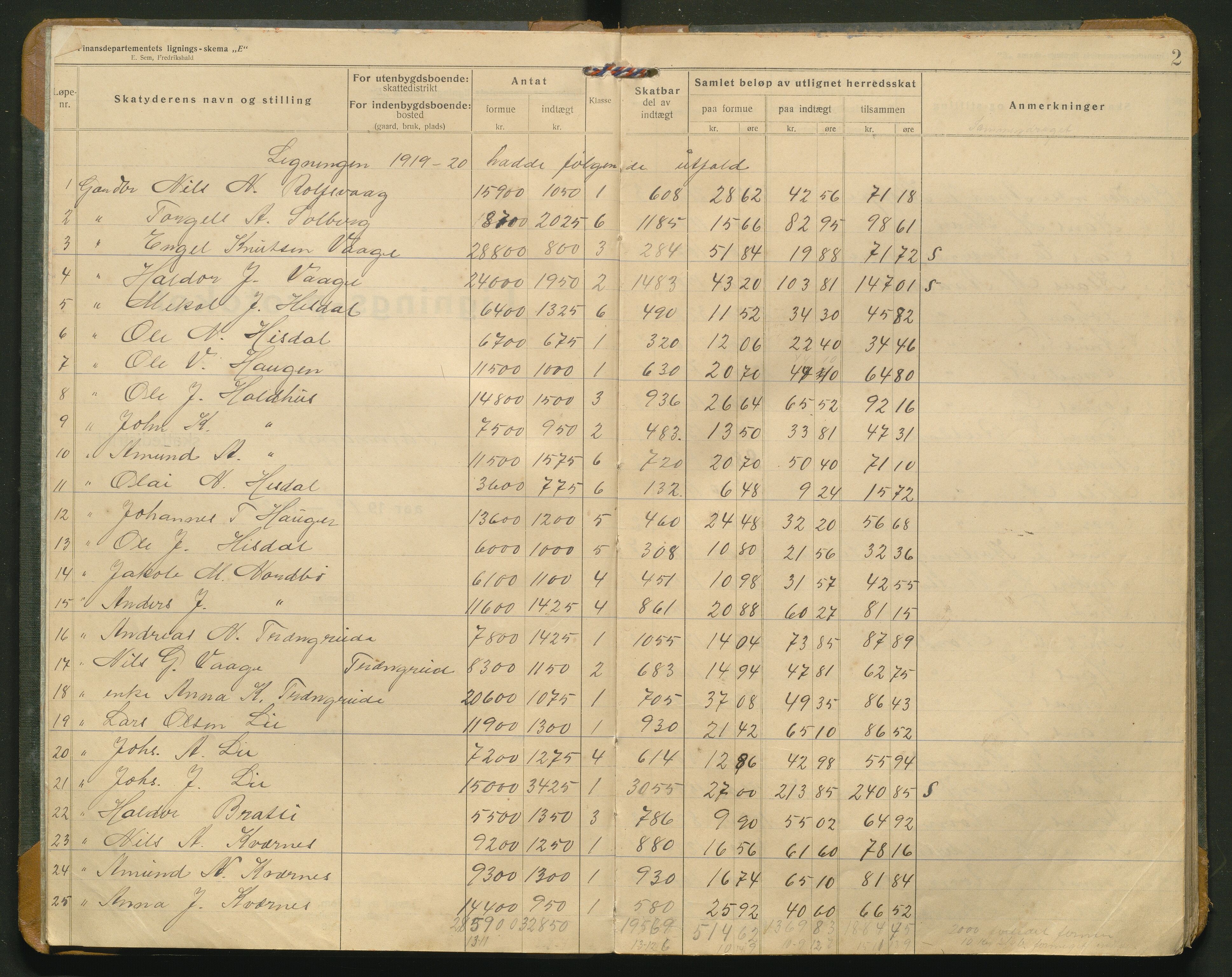 Samnanger kommune, Likningsnemnda, Likningsprotokoll, heradsskatt, 1919-1922, Astaref: IKAH/1242-142/G/Ga/L0004
