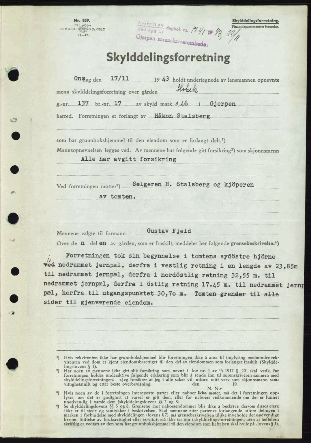 Mortgage book for Gjerpen sorenskriveri 1943-1944, Astaref: AV/SAKO-A-216/G/Ga/Gae/L0077