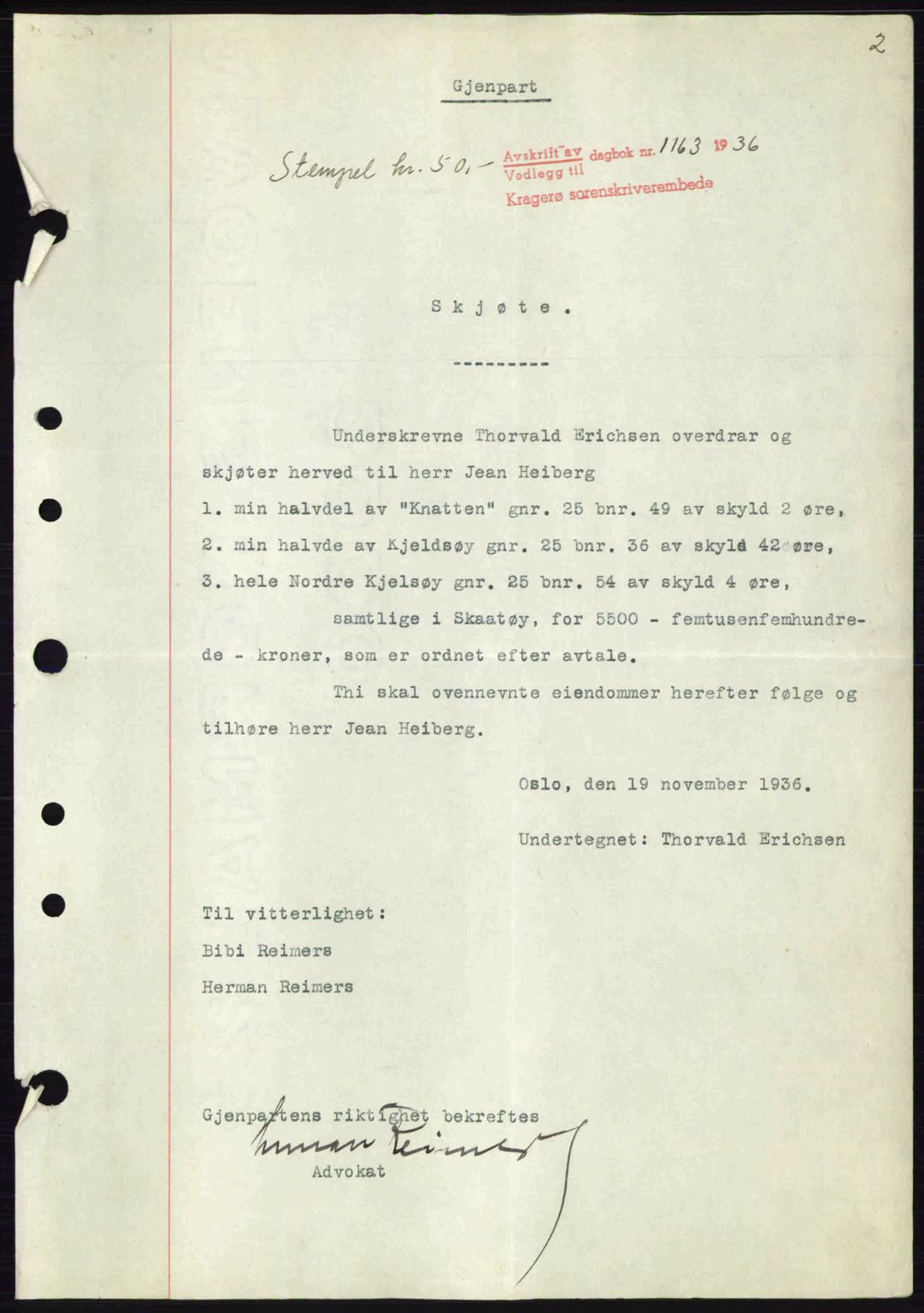 Mortgage book for Kragerø sorenskriveri, Drangedal, Sannidal og Skåtøy 1936-1937, Astaref: AV/SAKO-A-65/G/Ga/Gab/L0048