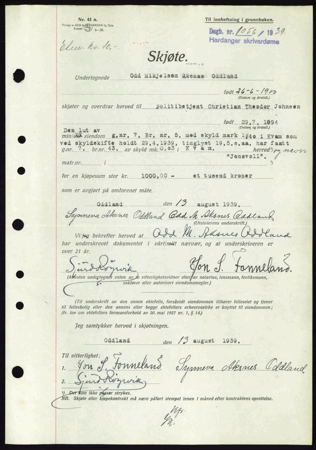 Mortgage book for Hardanger sorenskriveri 1939, Astaref: AV/SAB-A-2101/G/Ge/Gec/L0005