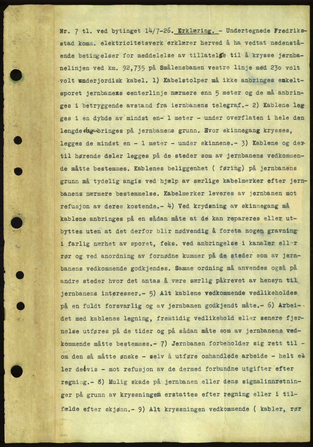 SAO-A-10473a: Fredrikstad byfogd G: TINGLYSING Ga: Pantebøker Gab: Pantebøker, rekke II L0018: Pantebok 18-21 - Dagboknr. 7/14.07.1926-7/20.04.1929 Mortgage book
