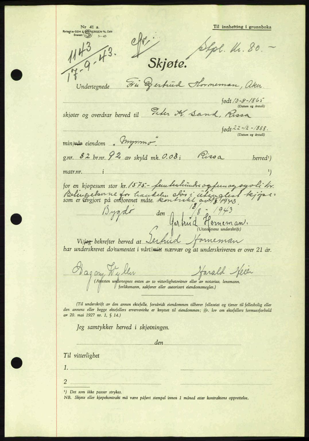 Mortgage book for Fosen sorenskriveri, Rissa, Stadsbygd 1942-1943, Astaref: AV/SAT-A-1107/1/2/2C