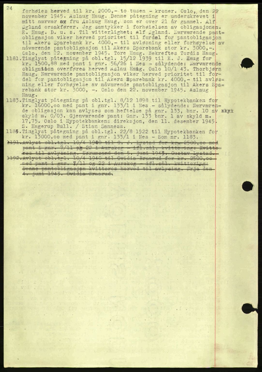 Mortgage book for Nes sorenskriveri 1945, Astaref: AV/SAO-A-10548/G/Gb/Gbb/L0018