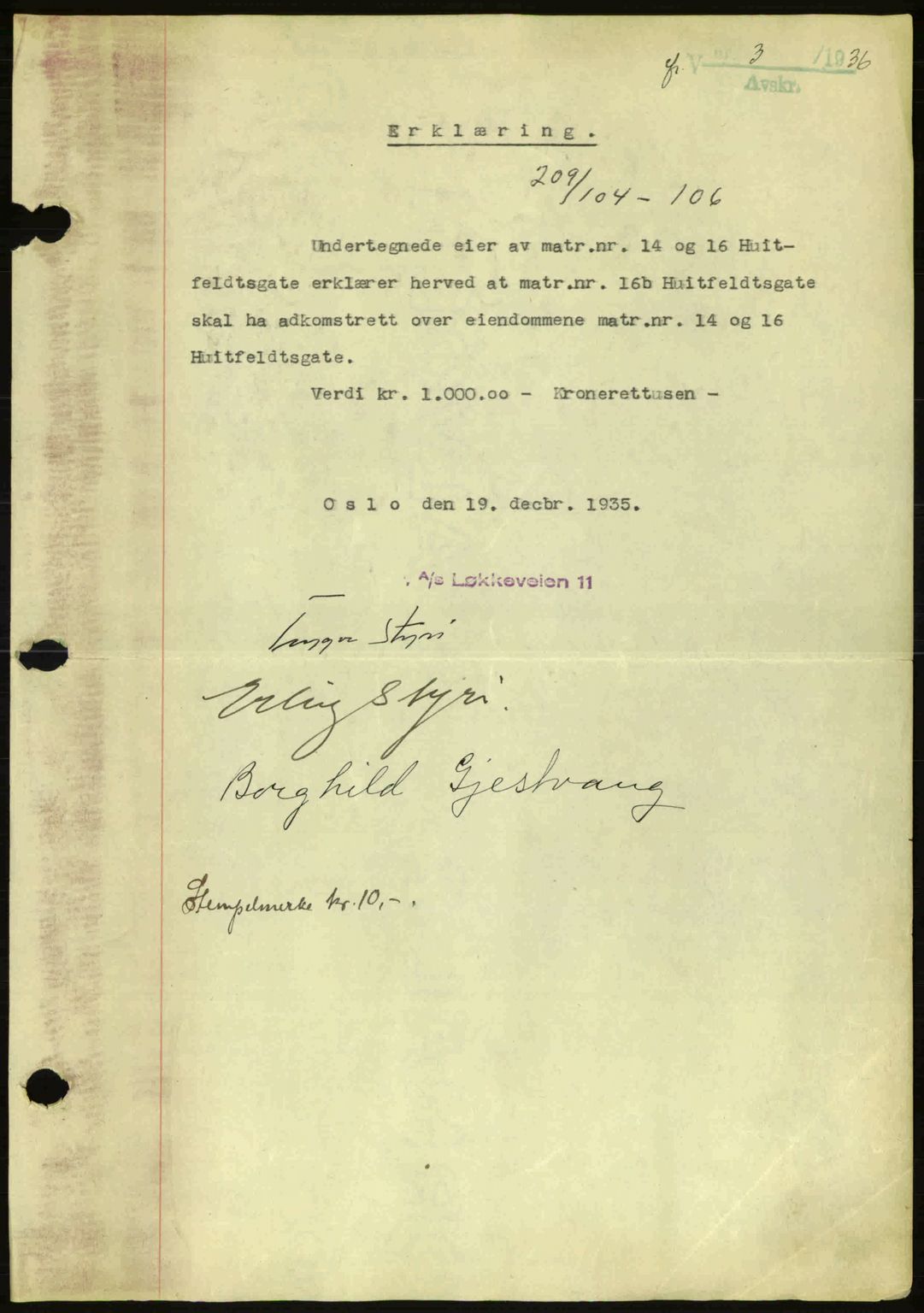 no. VB1-3 /1936Oslo county Oslo by jud. dist. Vestre distrikt local jud. dist. Pantebok B. Dagboknr. 3/1936-5250/1936Deed registrationPledge booksPropertyState archivesJudges and clerks