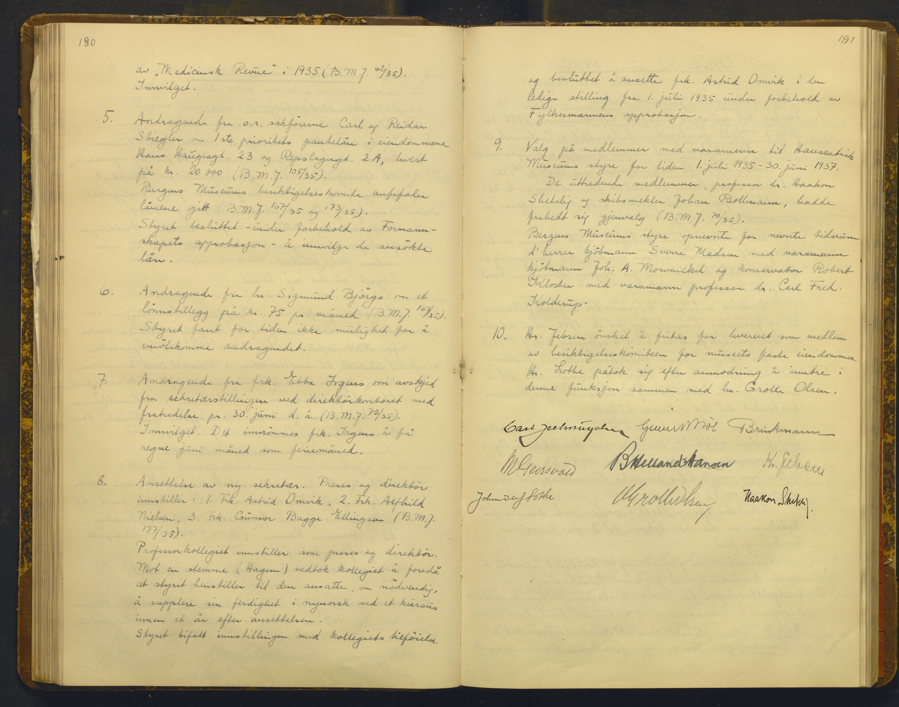 no. 9 /1927 - 1943-Med registerMeeting protocolsScience and researchState archivesUniversities and collegesMuseumThe Museum of Bergen 200 years anniversary