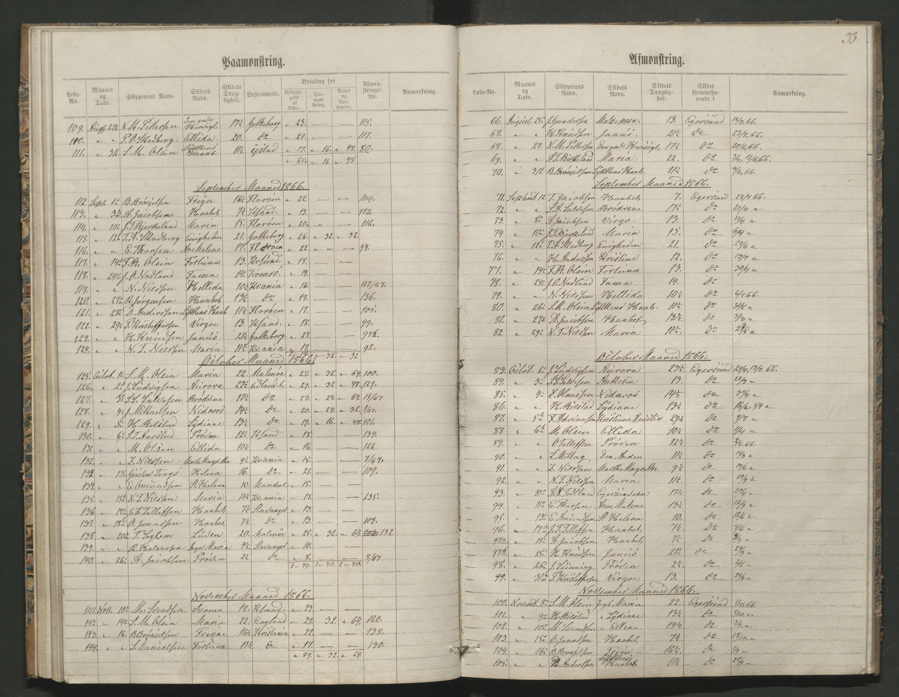 0005: Mønstringsjournal for Egersund innrulleringskrets Journal of ships with sign on/off (mønstringsjournal) no. 3.5 /1860 - 1871 - - Navy muster rolls Sailors Seafaring, Maritime State archives