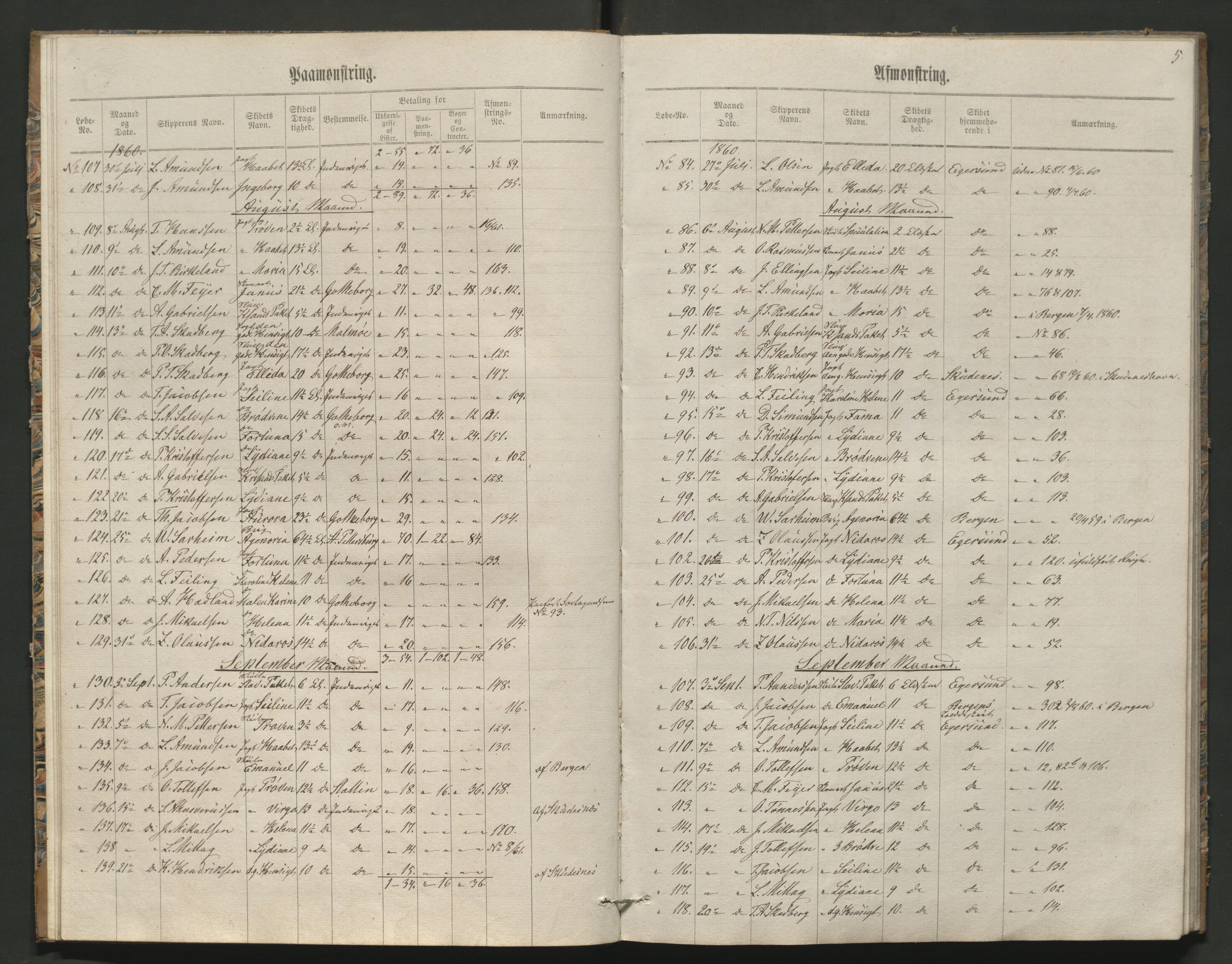 0005: Mønstringsjournal for Egersund innrulleringskrets Journal of ships with sign on/off (mønstringsjournal) no. 3.5 /1860 - 1871 - - Navy muster rolls Sailors Seafaring, Maritime State archives