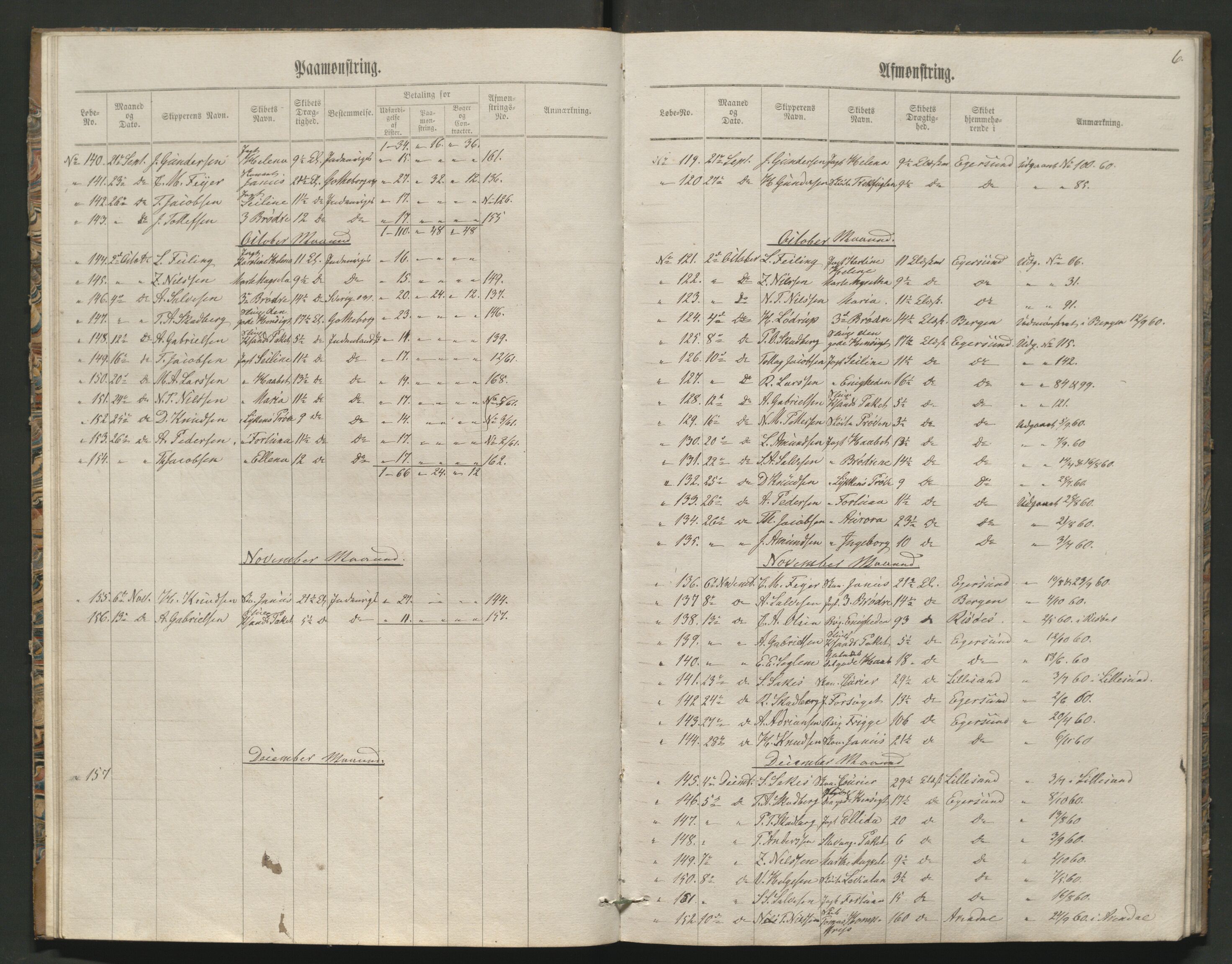 0005: Mønstringsjournal for Egersund innrulleringskrets Journal of ships with sign on/off (mønstringsjournal) no. 3.5 /1860 - 1871 - - Navy muster rolls Sailors Seafaring, Maritime State archives