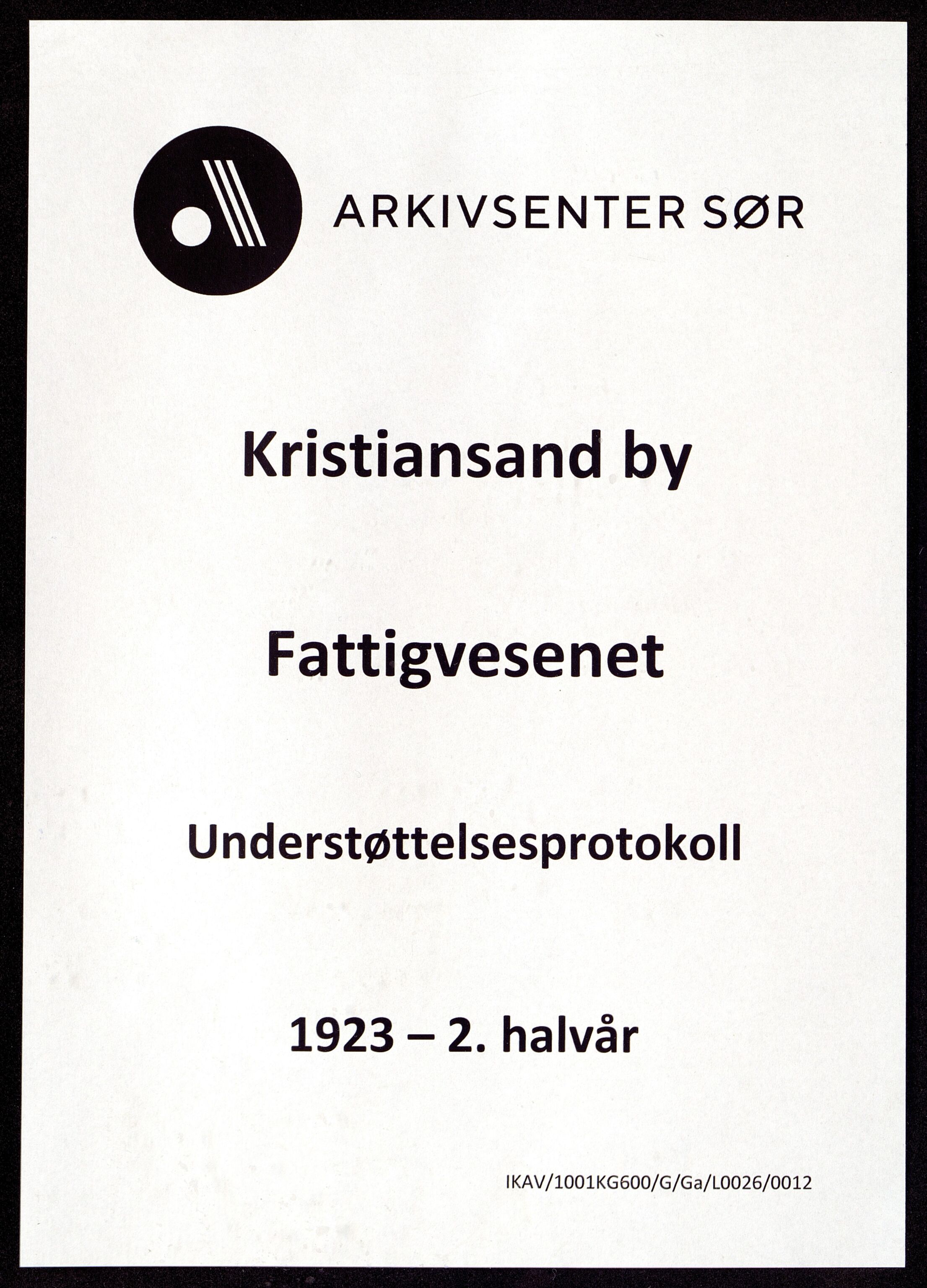 Kristiansand By - Fattigvesenet - Understøttelsesprotokoll - Per halvår - Boks 26 - Protokoll nr. 12: 1923 2. halvår, Astaref: ARKSOR/1001KG600/G/Ga/L0026/0012