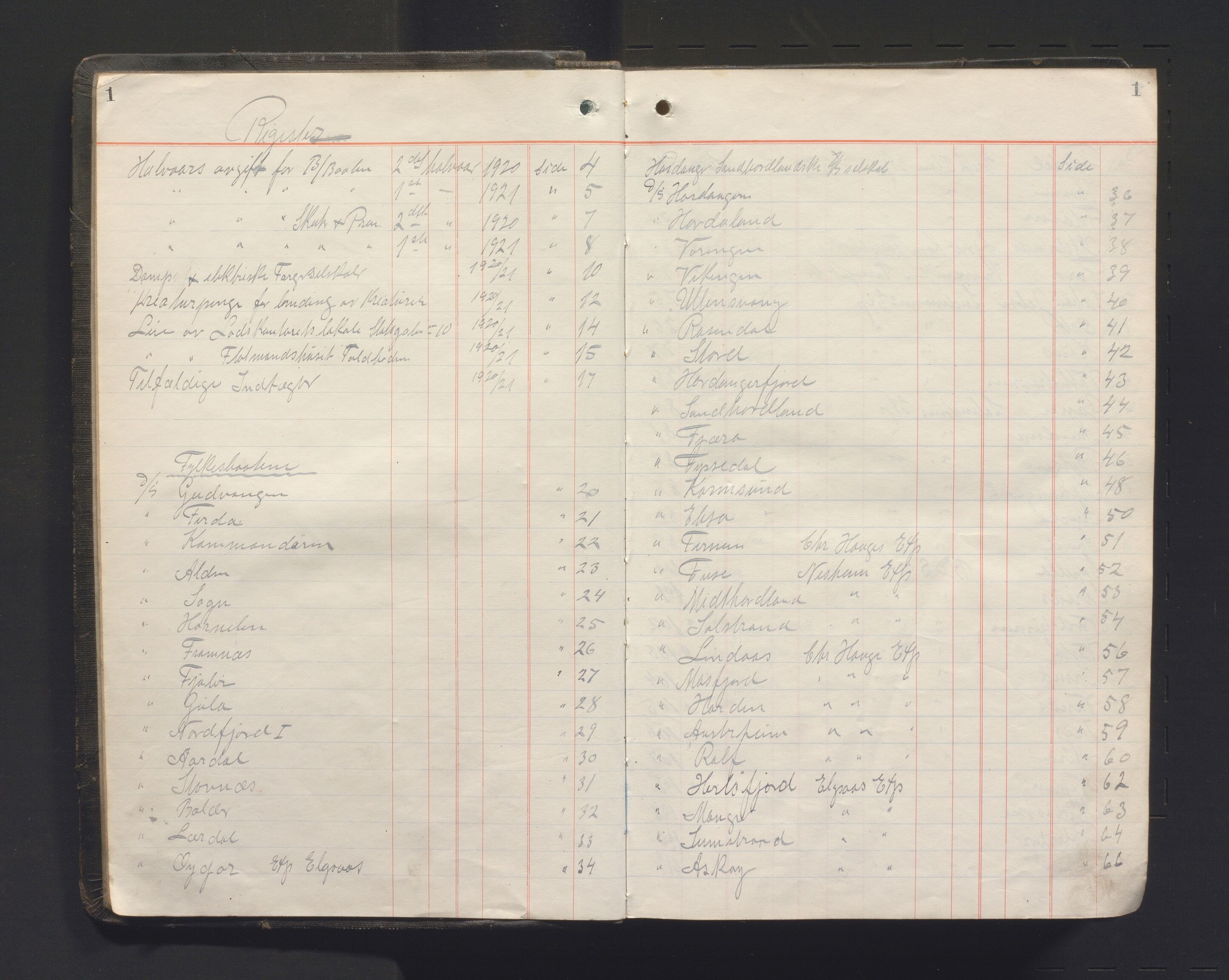 A-0742: Bergen kommune. Havnekontor/havnefogd H: Avgifts- og bryggebøker Ha: Havneavgiftsprotokoller Haa: Bryggebøker 1876-1922 L0052: "Budgettet 1920/21" Boat/ship records