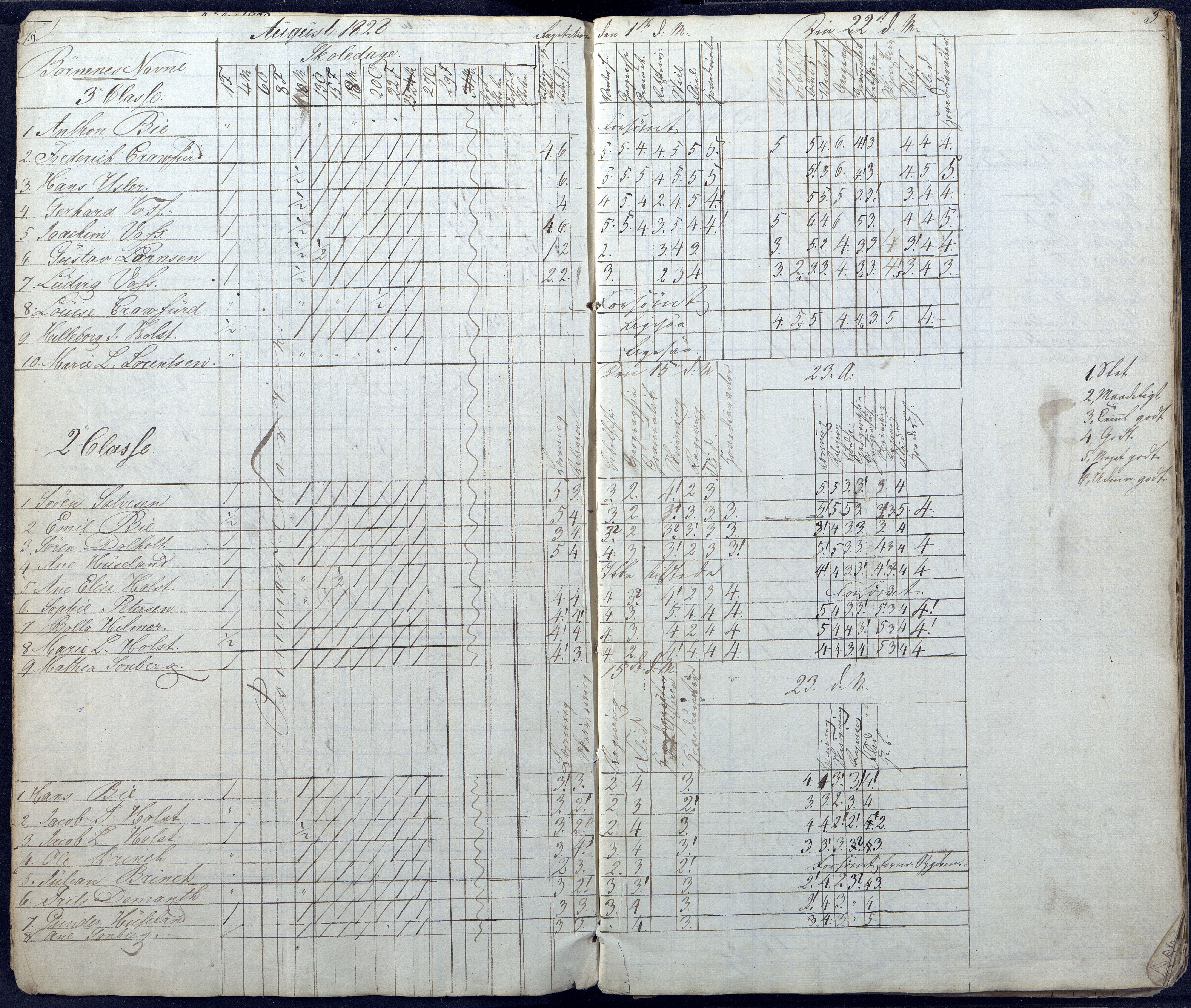Grimstad borgerskolen, Journal (dagbok og karakterprotokoll) 1828-1832, Astaref: AAMA/KA0904-PK/25/L0001
