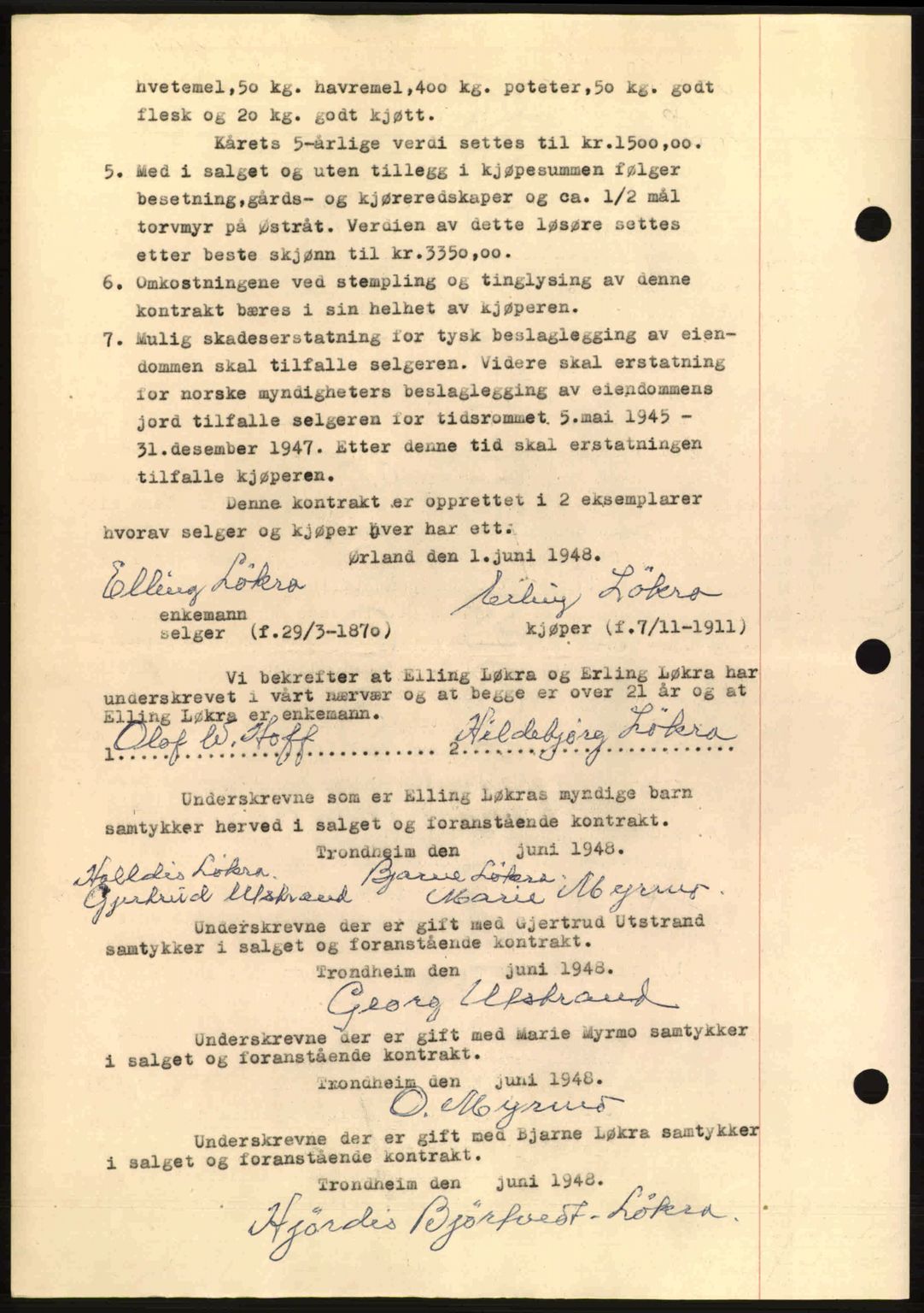 Mortgage book for Fosen sorenskriveri, Osen, Roan, Stoksund, Åfjord, Jøssund, Nes, Bjugn, Stjørna, Ørland 1948, Astaref: AV/SAT-A-1107/1/2/2C