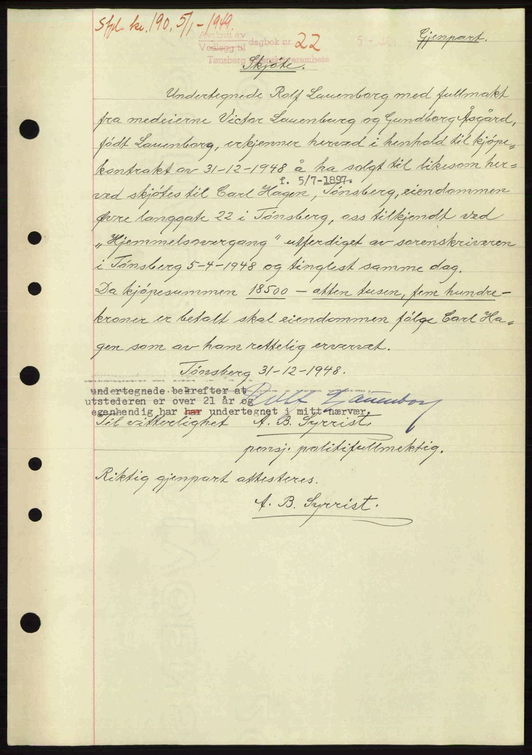 Mortgage book for Tønsberg sorenskriveri, Tønsberg by, Nøtterøy og Tjøme 1948-1949, Astaref: AV/SAKO-A-130/G/Ga/Gaa/L0026