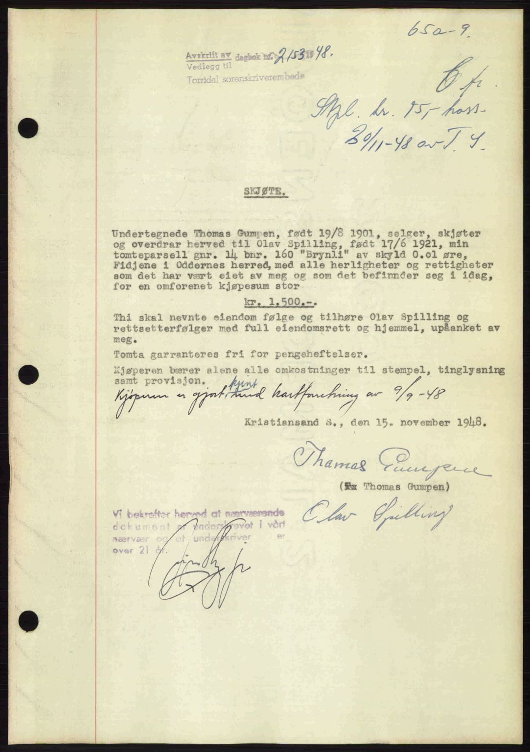 Mortgage book for Torridal sorenskriveri, Randesund, Oddernes, Tveit, Greipstad, Søgne 1948-1949, Astaref: AV/SAK-1221-0012/G/Gb/Gba/L0075