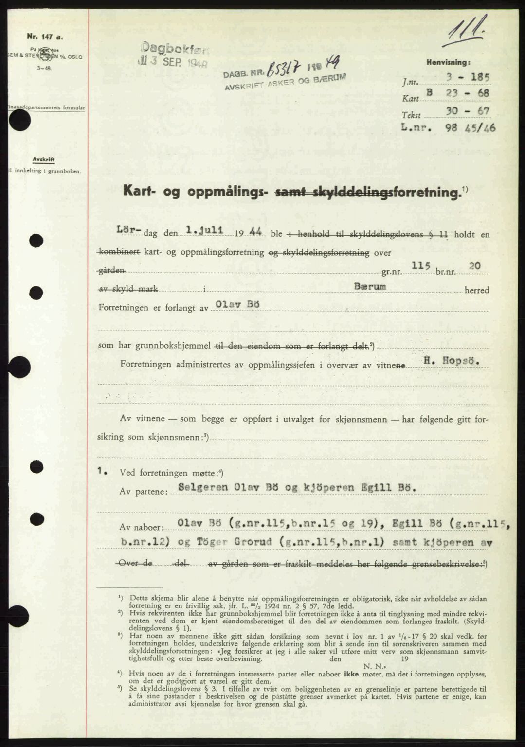 Mortgage book for Asker og Bærum sorenskriveri 1949, Astaref: AV/SAO-A-10379a/G/Gb/Gba/L0007