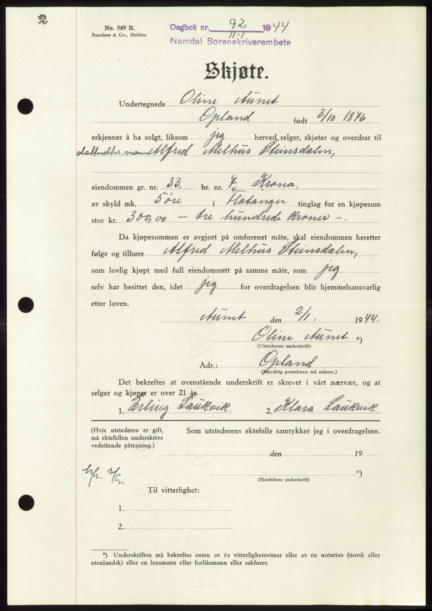 Mortgage book for Namdal sorenskriveri 1943-1944, Astaref: AV/SAT-A-4133/1/2/2C