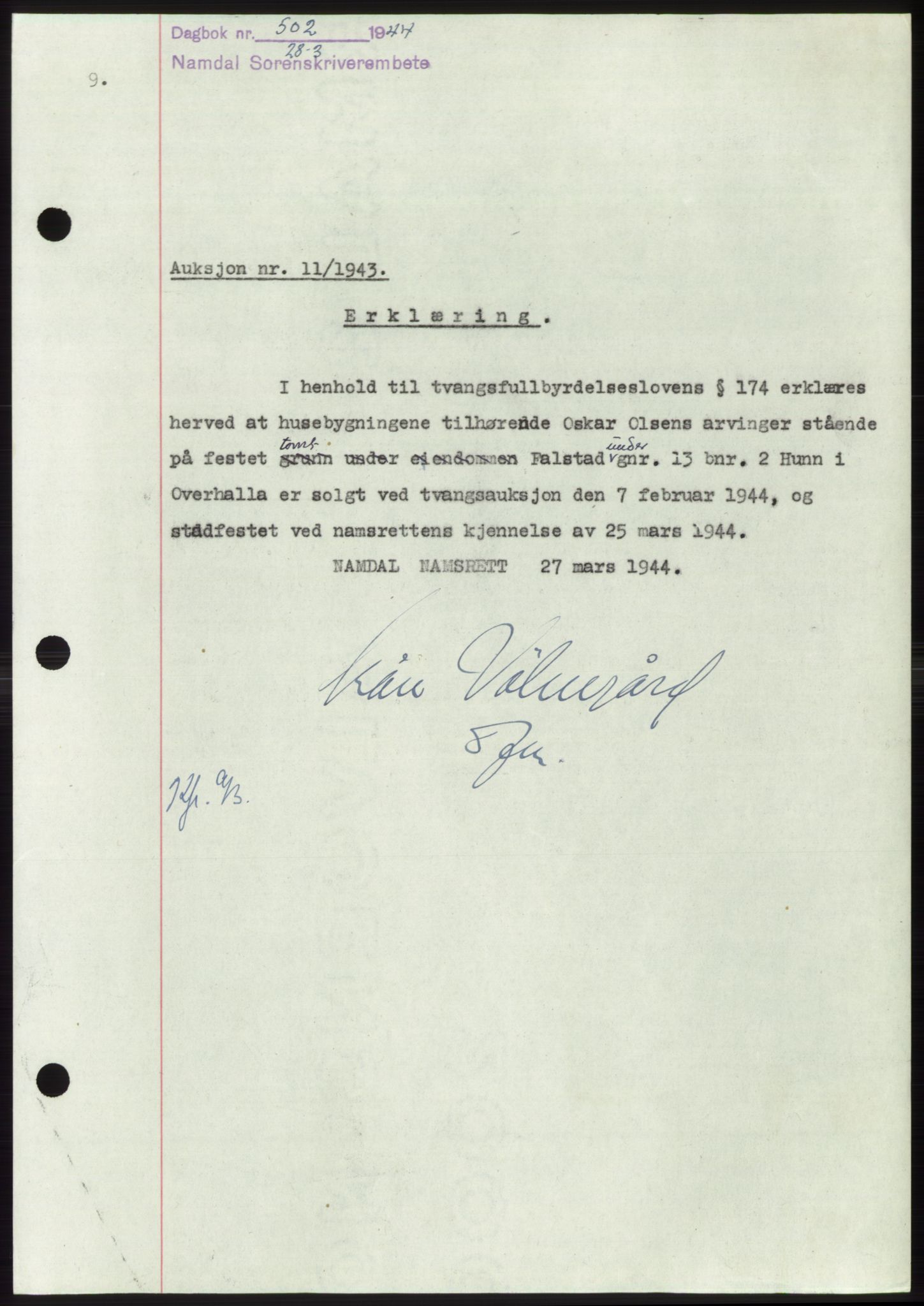Mortgage book for Namdal sorenskriveri 1943-1944, Astaref: AV/SAT-A-4133/1/2/2C
