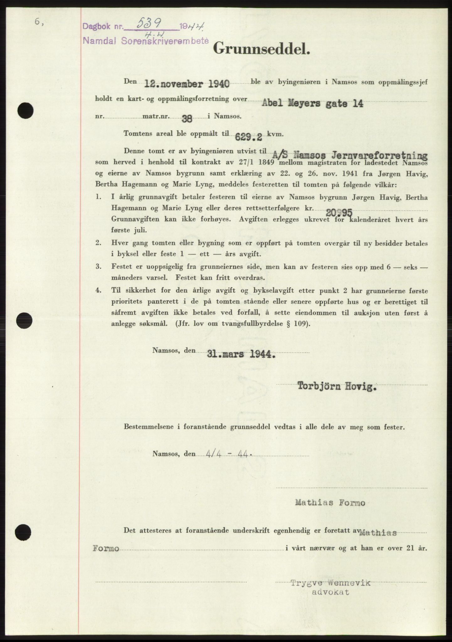 Mortgage book no. - /03.05.1943 - 27.04.1944 Nord-Trøndelag county