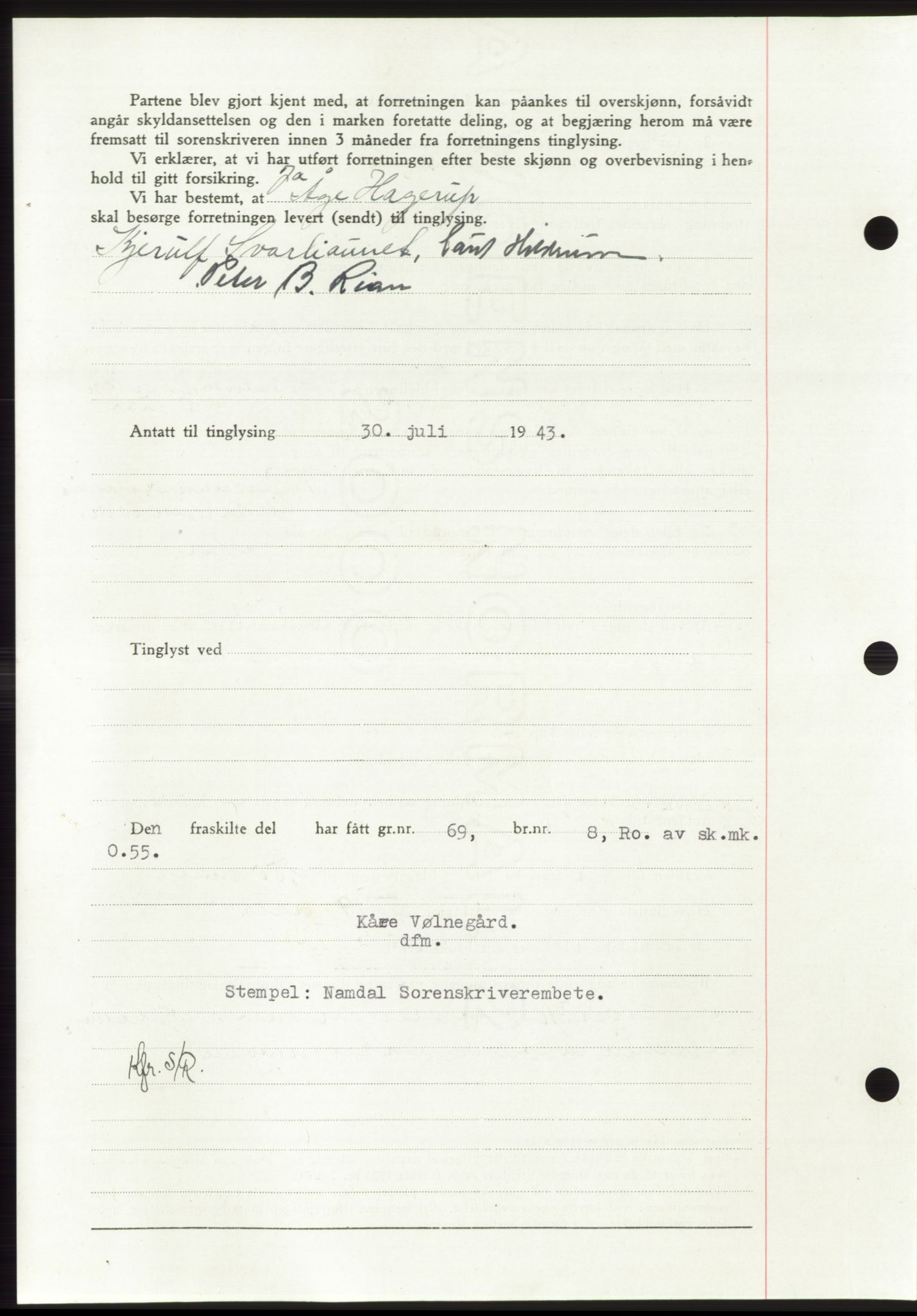 Mortgage book no. - /03.05.1943 - 27.04.1944 Nord-Trøndelag county