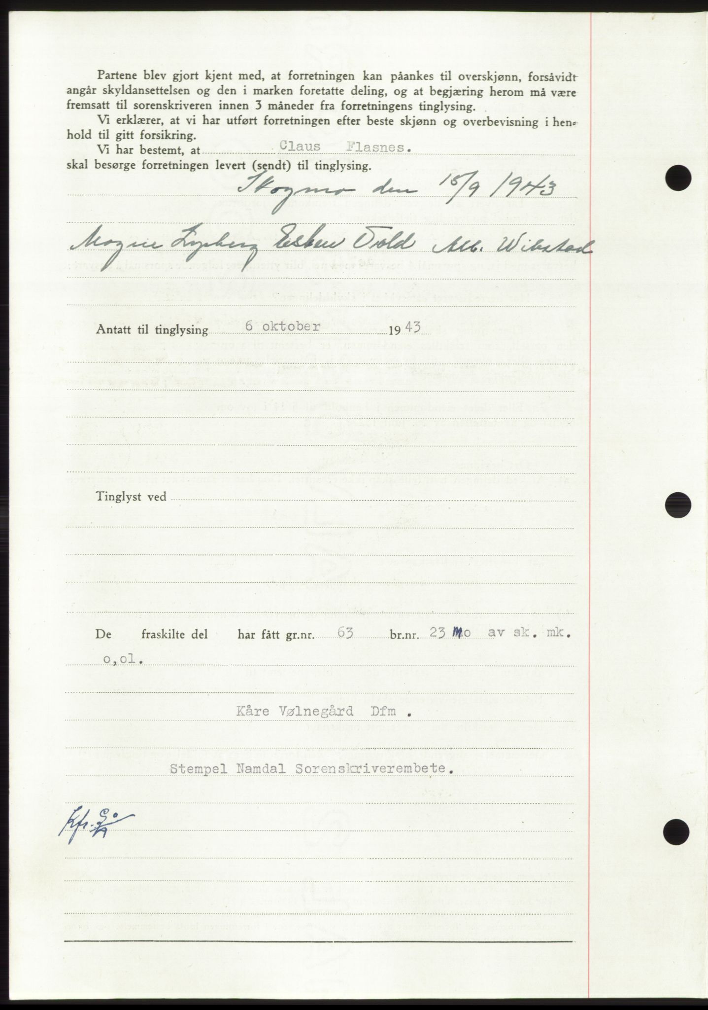 Mortgage book no. - /03.05.1943 - 27.04.1944 Nord-Trøndelag county